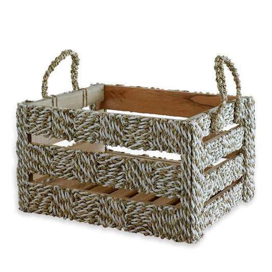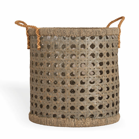 RATTAN ROPE HANDLE GREY WASH PLANTER