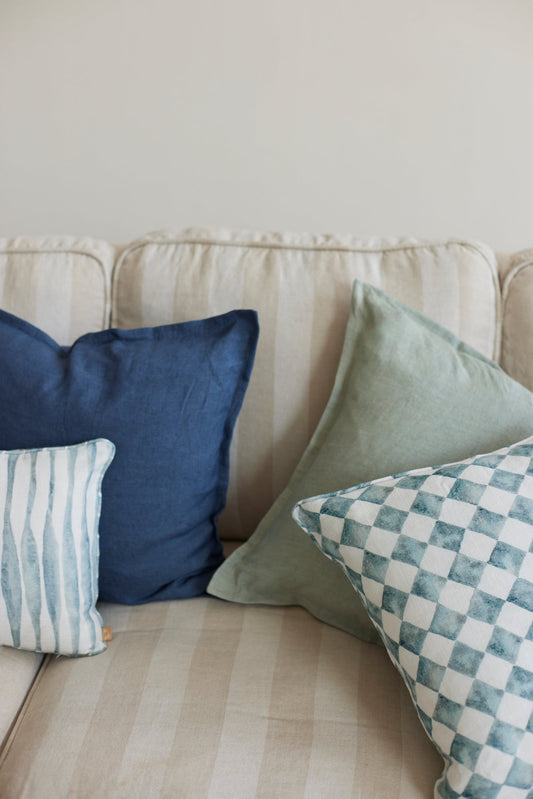 CHECKER BLUE CUSHION COVER