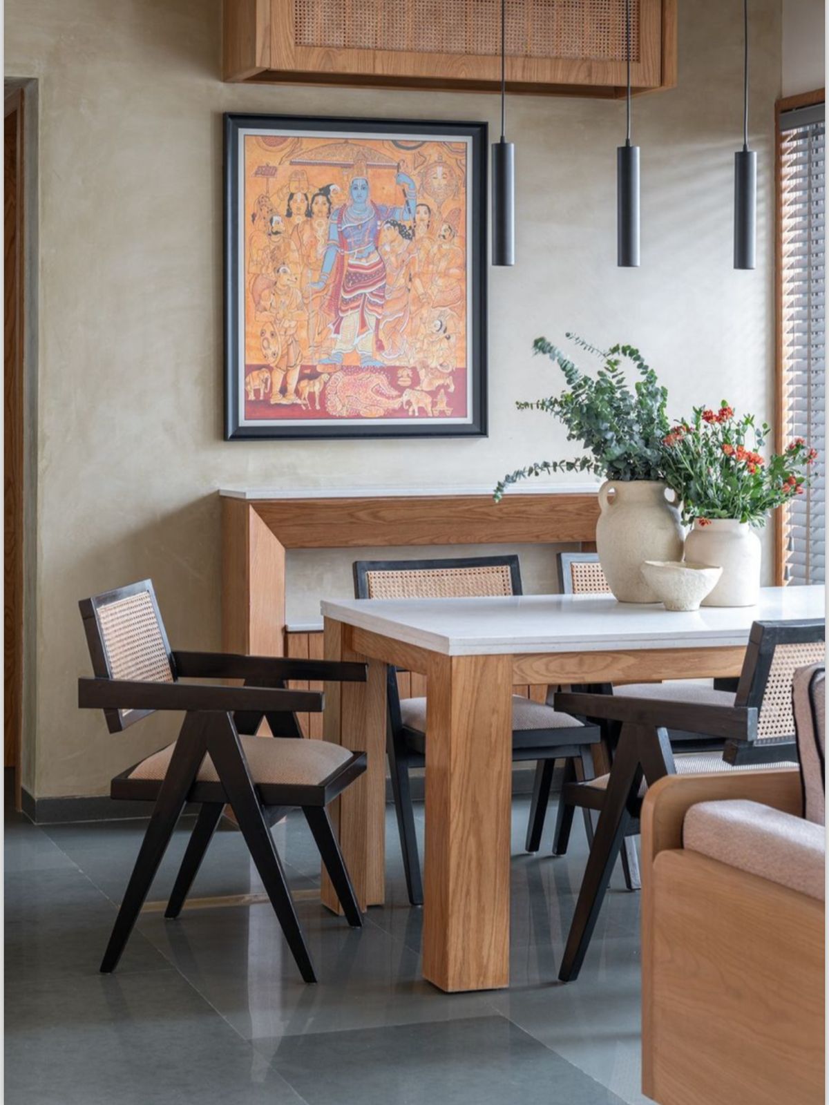 Accent cushions in earthy tones, adorned with handwoven textures or subtle block prints, add depth without overpowering the space. Minimalist paintings, often abstract or inspired by traditional Indian motifs, bring a sense of balance and calm to walls.