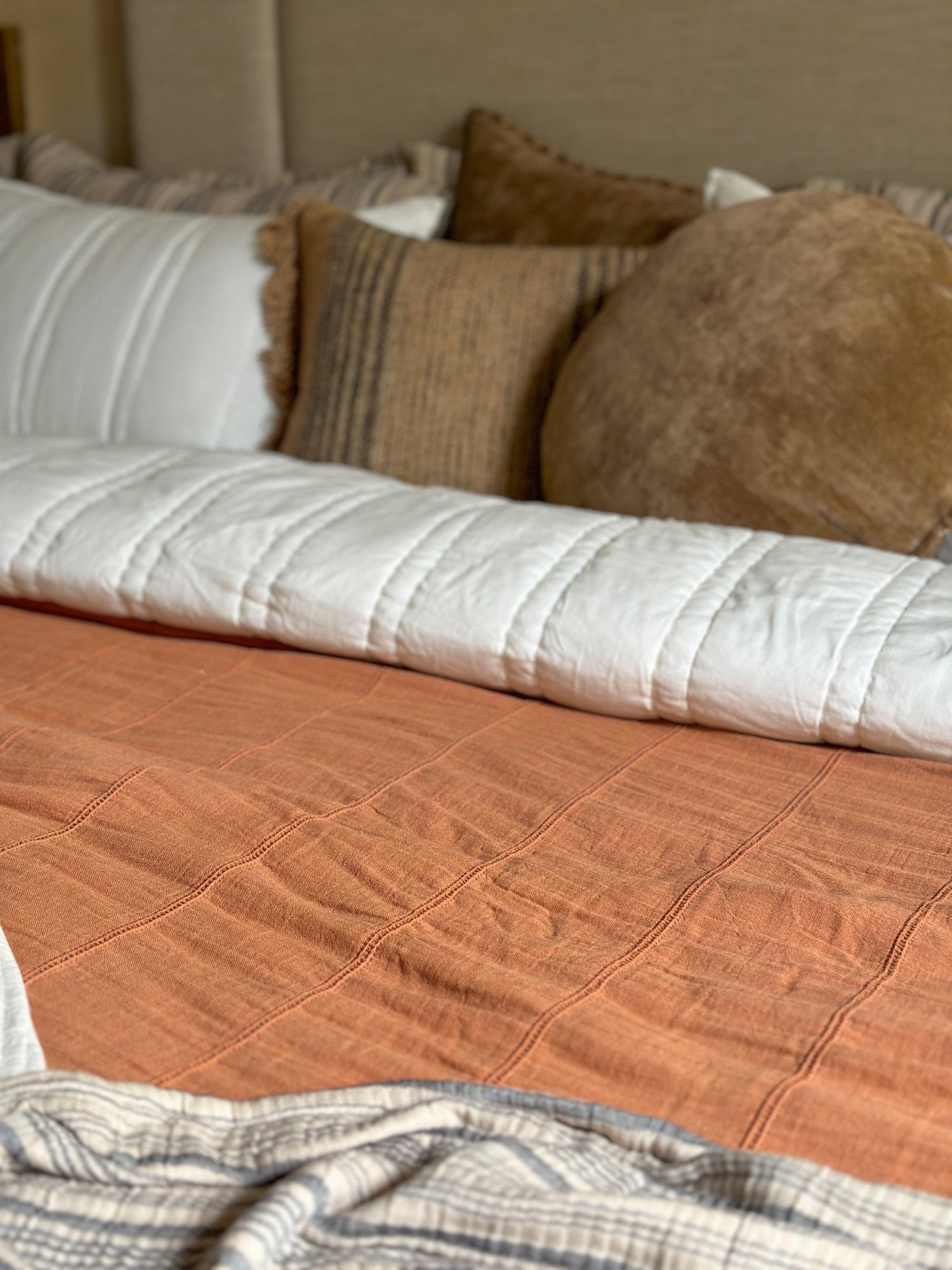 "I look at my bed as a canvas. I love to play around with textures colours and shapes to make it comfortable and stylish"