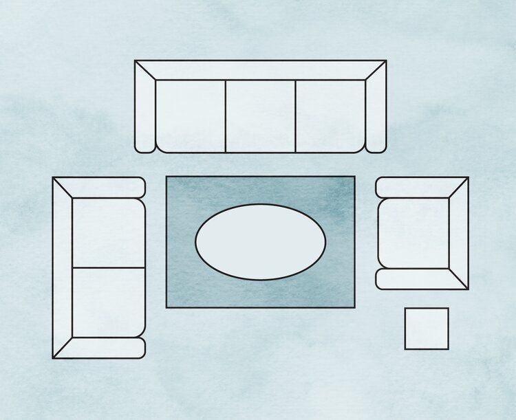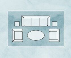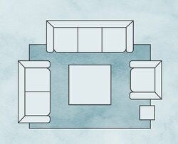 Chances are, that you might have a wall that you have furniture up against. In this case, it’s better to invest in a slightly smaller rug that allows you to place the front leg of your furniture pieces on the rug. It’s versatile and allows the room to look spacious. You dont have to bother covering up a space you're never going to actually lay your eyes on, you know! We call this the Front legs on the rug