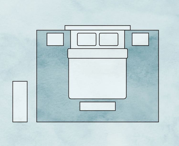 Just like most other elements, the rug placement too, revolves around the bed, in the bedroom. After all, who doesn’t want to get out of bed and have their feet land on something luxurious and soft?