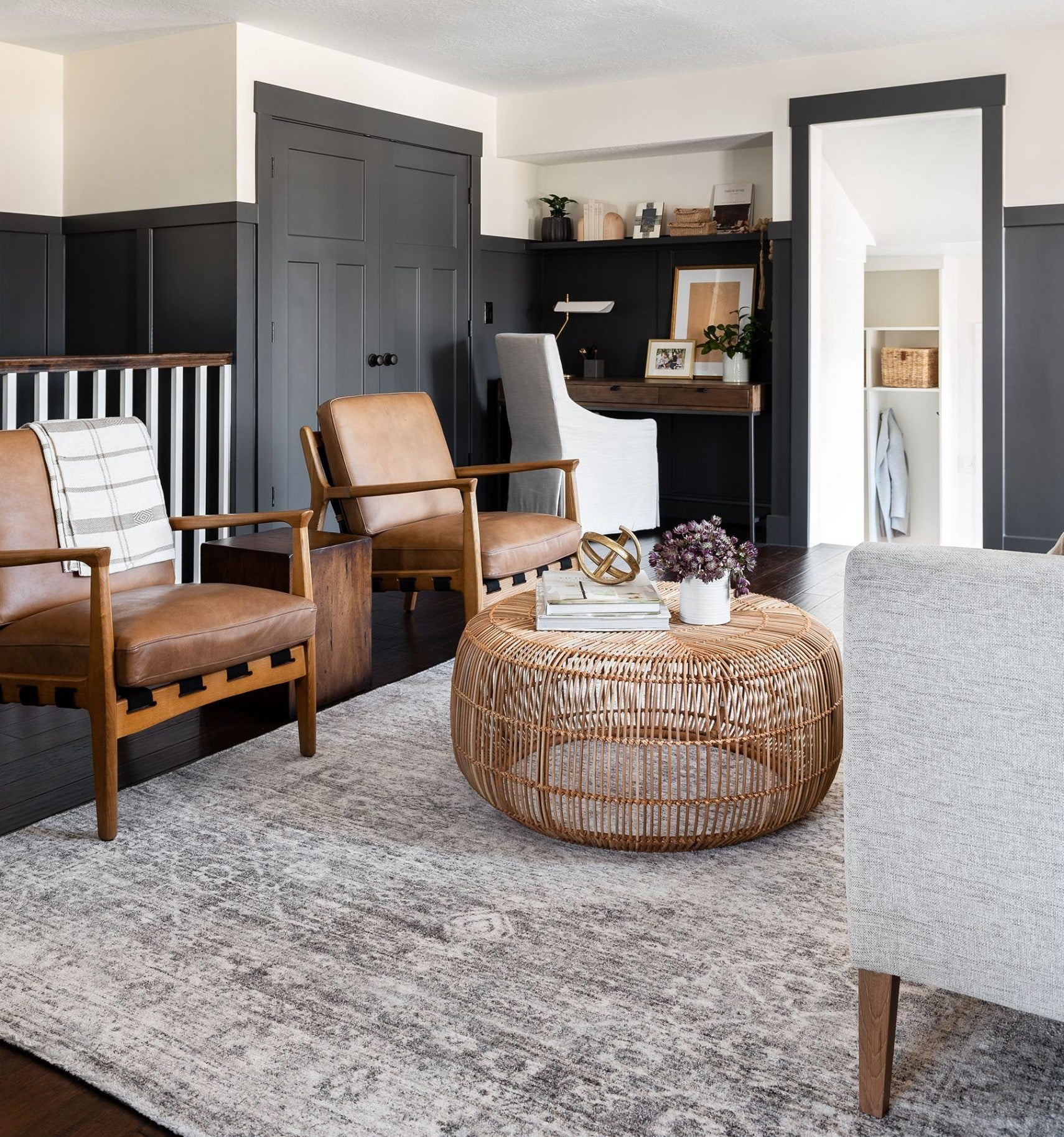 There’s a few ways of laying out your rug which will further help you decide the dimensions of the one you want to bring home. For an open concept space where there is no furniture against a wall, invest in a larger rug. Placing all your furniture on the rug, will help you define the seating area specifically and also unify the elements of the room. We call this the All legs on the rug layout.