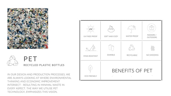 - Composition : PET Yarn (Recycled Plastic Bottles)