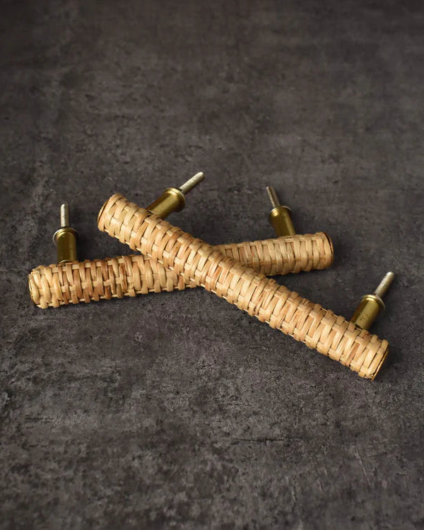 ARUSHA VINTAGE RATTAN BRASS CABINET DRAWER HANDLE