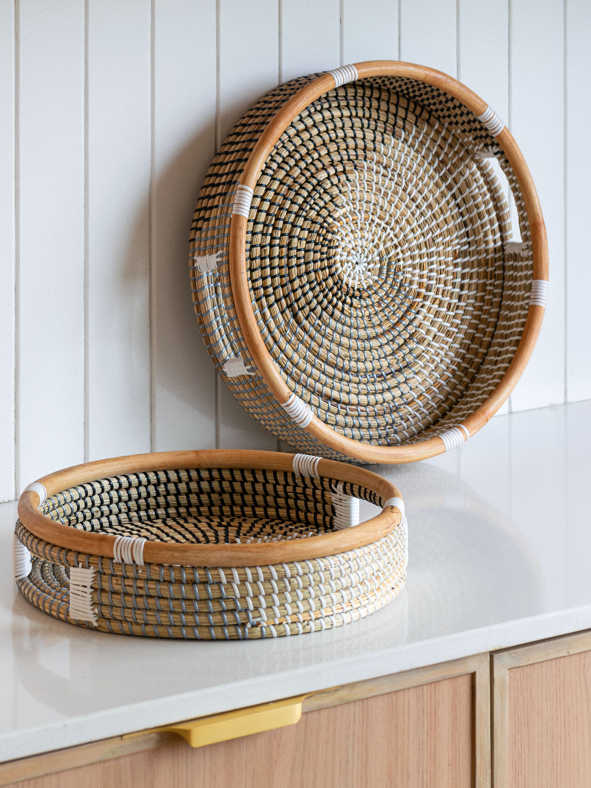 Discover the charm of our handcrafted seagrass trays, available in two sizes. Perfectly sized for your needs, these versatile trays bring a touch of natural elegance to any space. Whether you use them for serving or as stylish organizers, they add a rustic yet modern touch to your home decor. Elevate your living space with the timeless beauty of our seagrass trays.