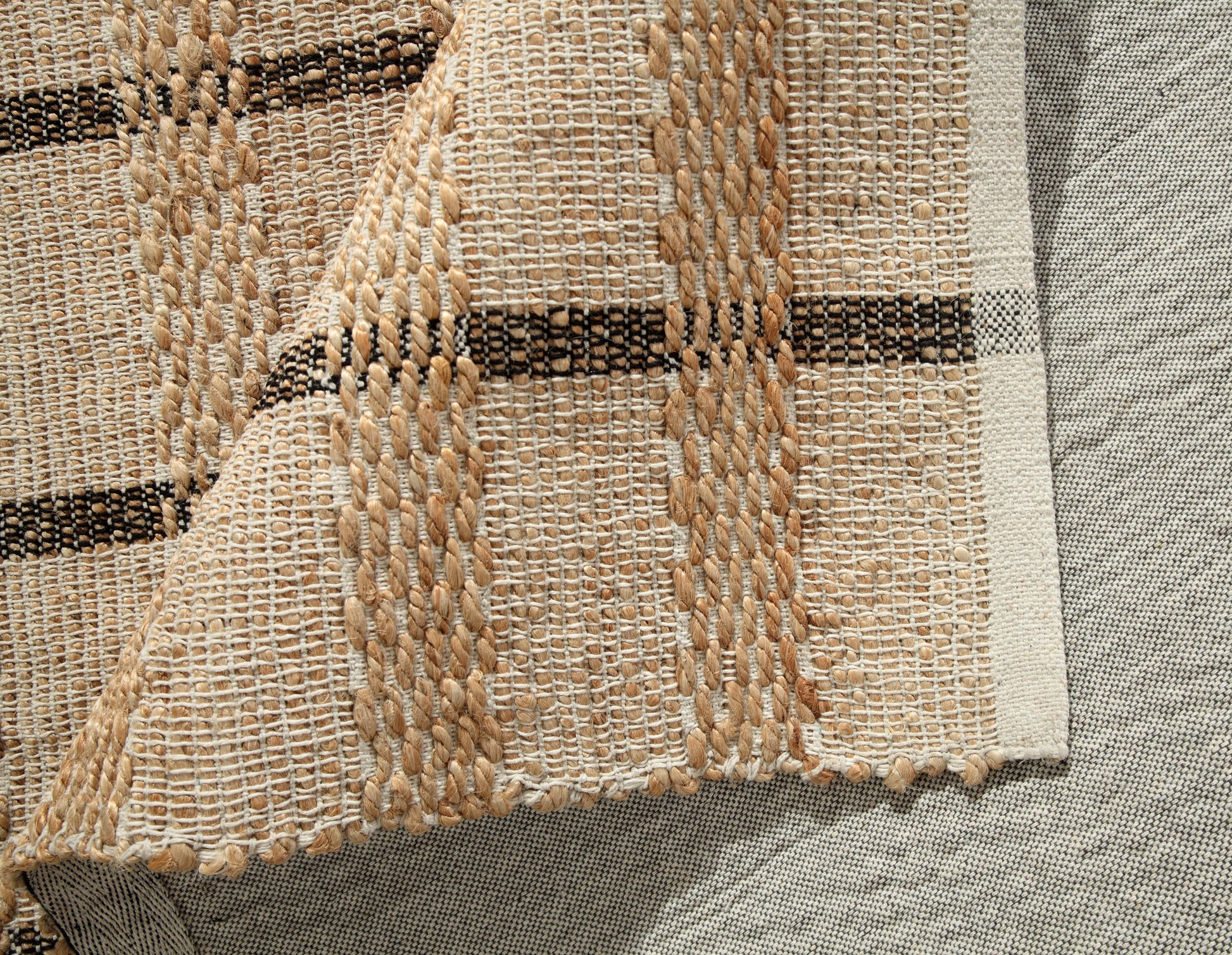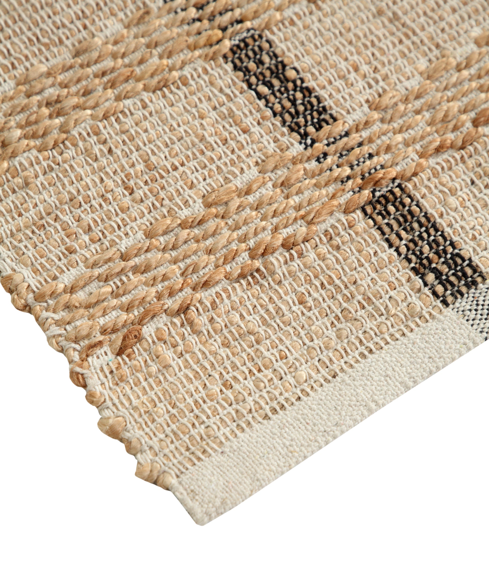 The Maldives Black & Beige Box Jute Rug is a handcrafted blend of natural jute and cotton with a bold black stripe design. Its flatweave construction is lightweight, durable, and ideal for high-traffic areas. Perfect for coastal or earthy interiors, it adds texture and warmth without overwhelming your space. Slight variations are natural and add to its handmade charm.