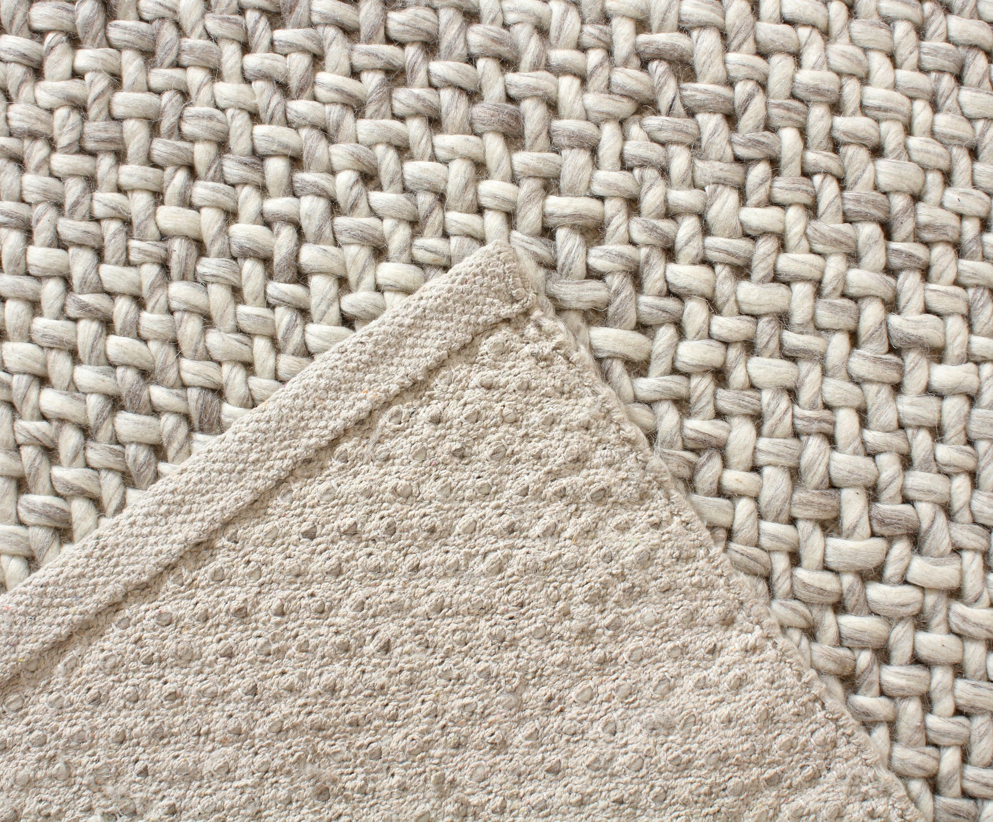 The Brianca Highland Carpet is handwoven from 100% pure wool in a bold basket-weave pattern that adds depth and softness underfoot. Its thick, sculptural texture and soothing ivory-grey tones bring quiet luxury to any space. A modern take on traditional craftsmanship, perfect for minimalist or rustic interiors.