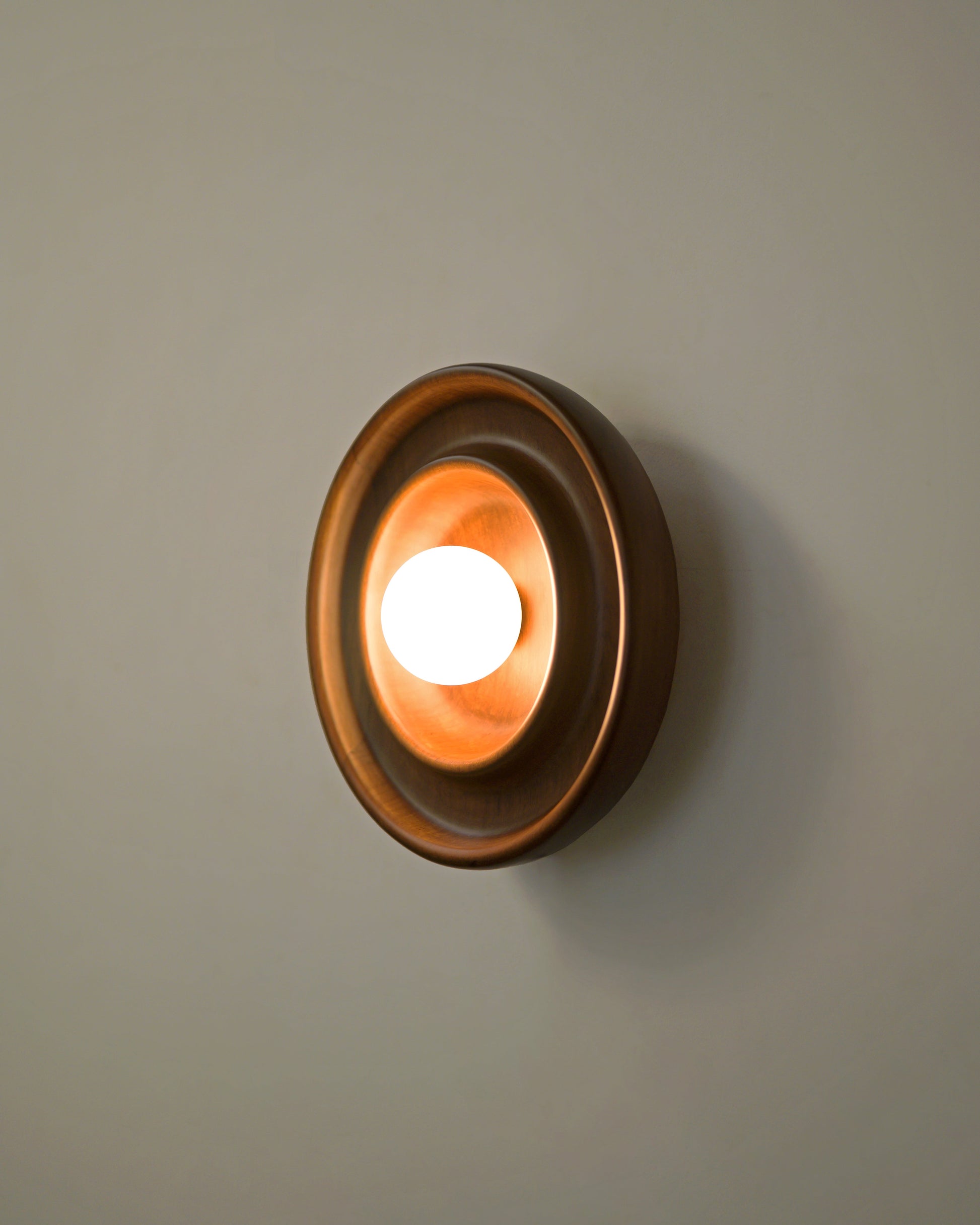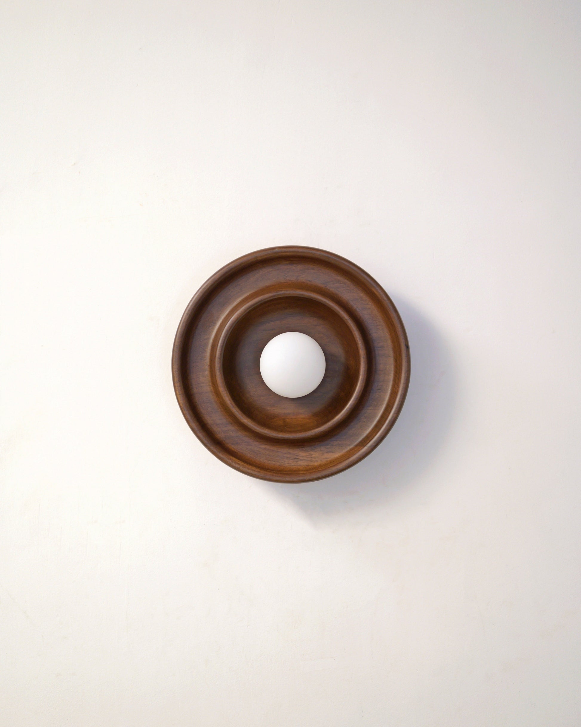 The Discus wall light becomes a simple yet classy wall light, with its warm light illuminating a space while also highlighting the wooden grain.