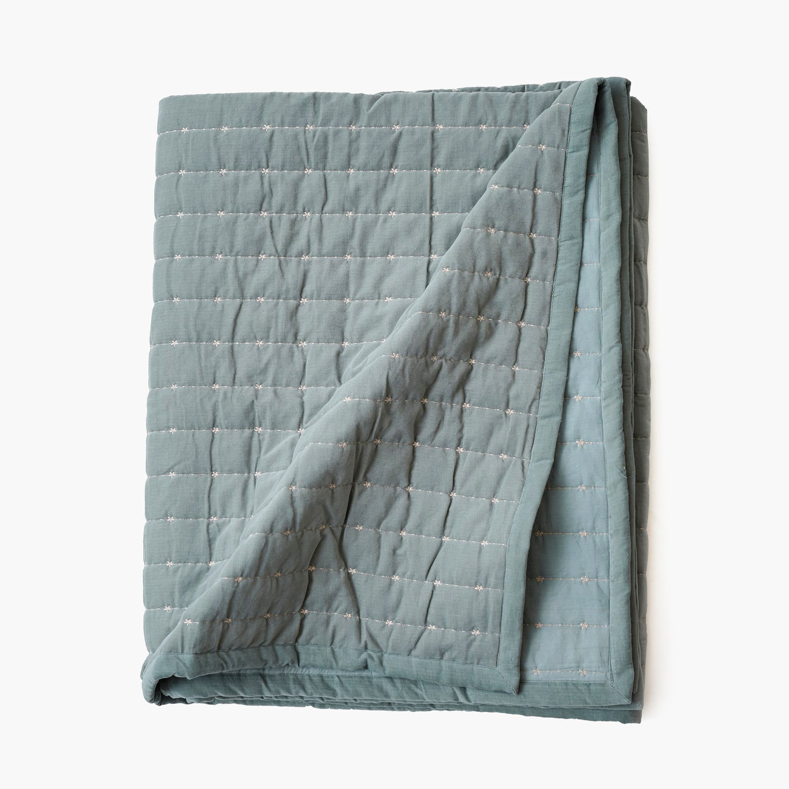 Our Duck Egg Kantha Bedspread is the ideal base for your cozy bedscape. Hand quilted for a beautiful puckered look, the bedspread has soft cotton filling and can be also be used as an AC Quilt.