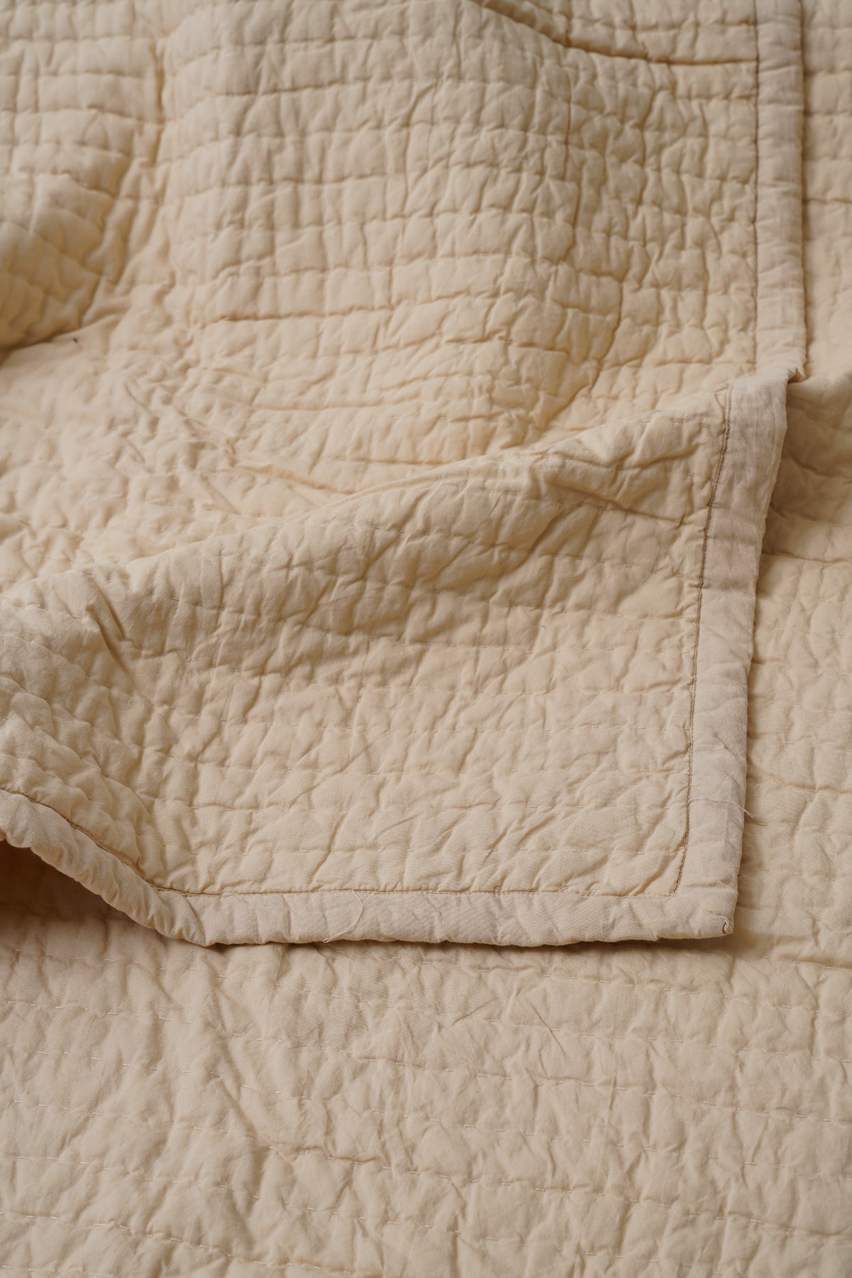 Our Blush Kantha Bedspread is the ideal base for your cozy bedscape. Hand quilted for a beautiful puckered look, the bedspread has soft cotton filling and can be also be used as an AC Quilt.