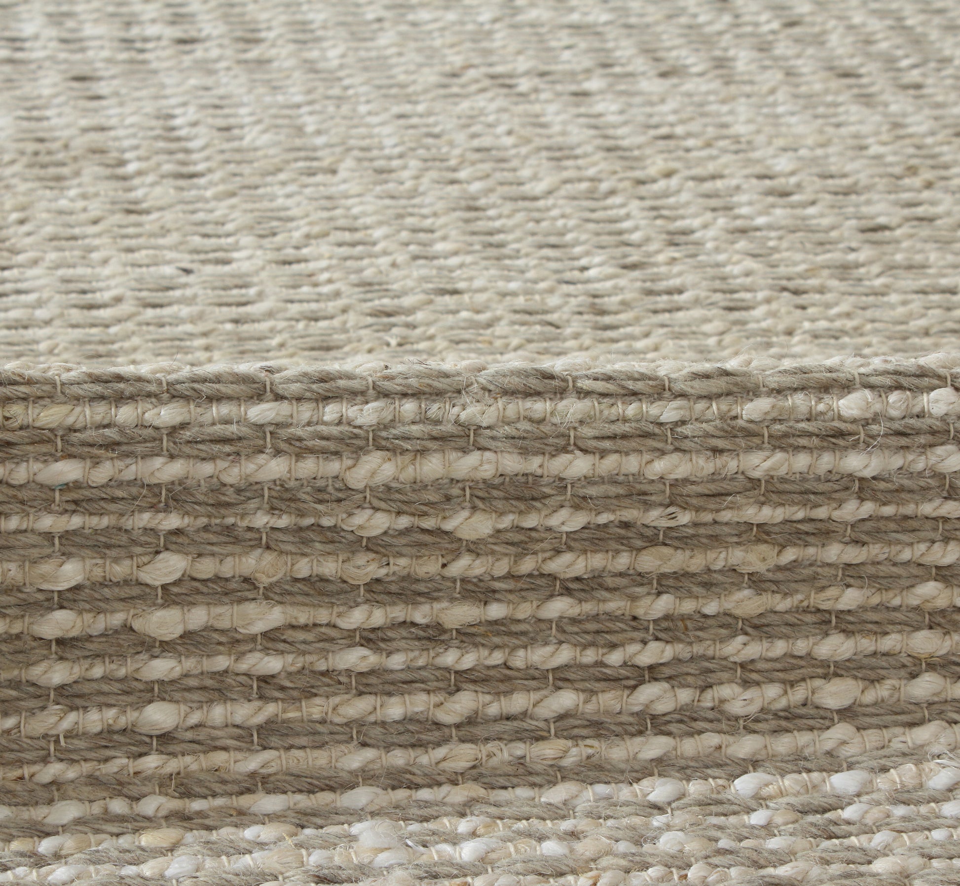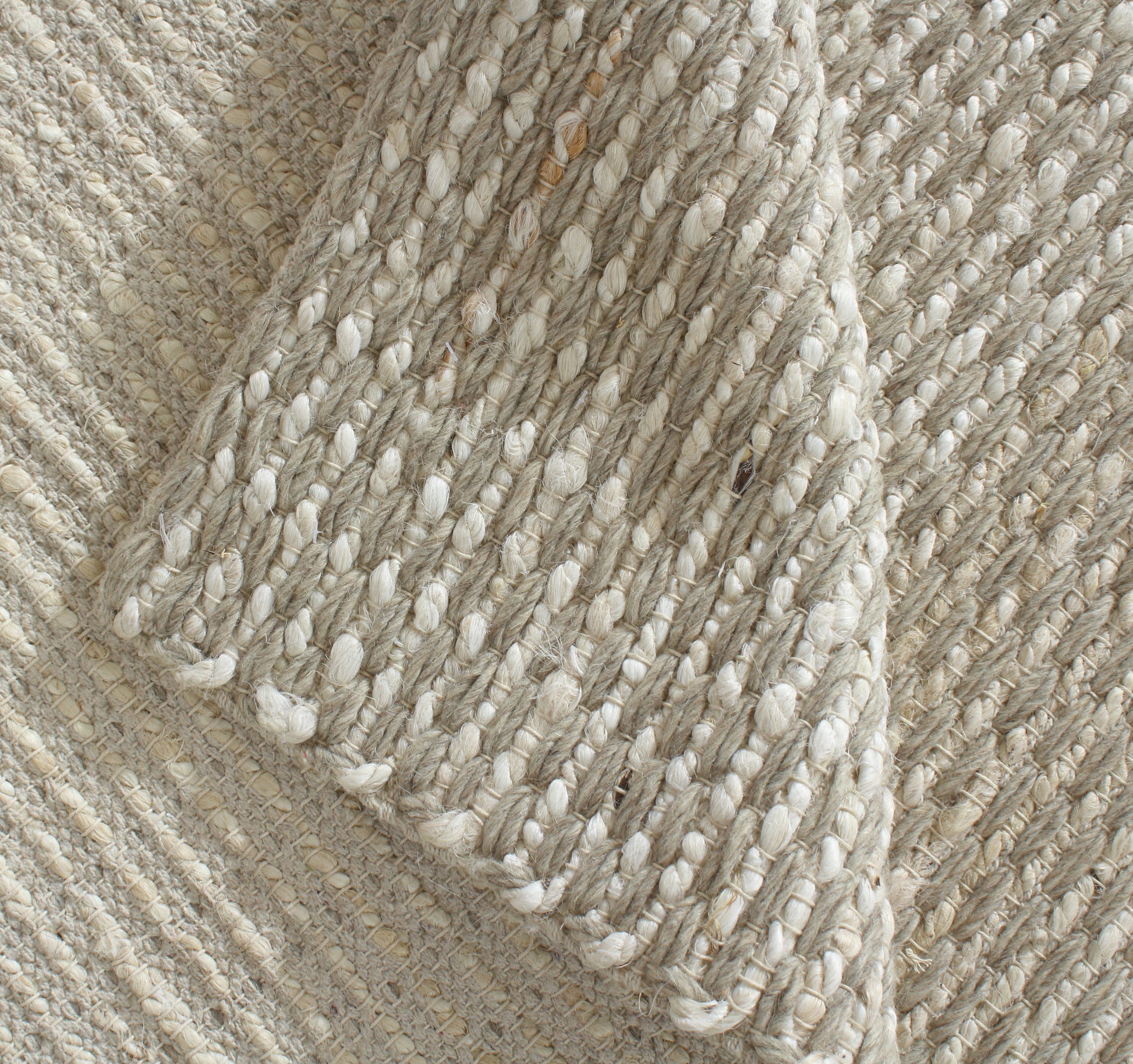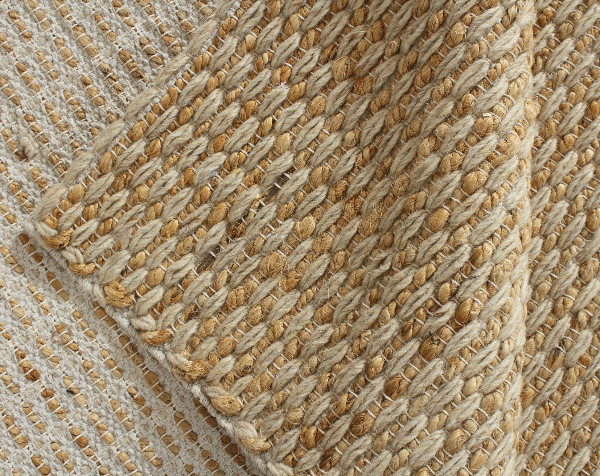 The Halo Dola Rug is handwoven from creamy white jute and warm beige wool in an intricate looped weave that adds texture and warmth. Its earthy pattern and neutral tones suit both modern and rustic spaces. Soft yet durable, it's perfect for grounding living rooms, reading nooks, or bedrooms with natural elegance.