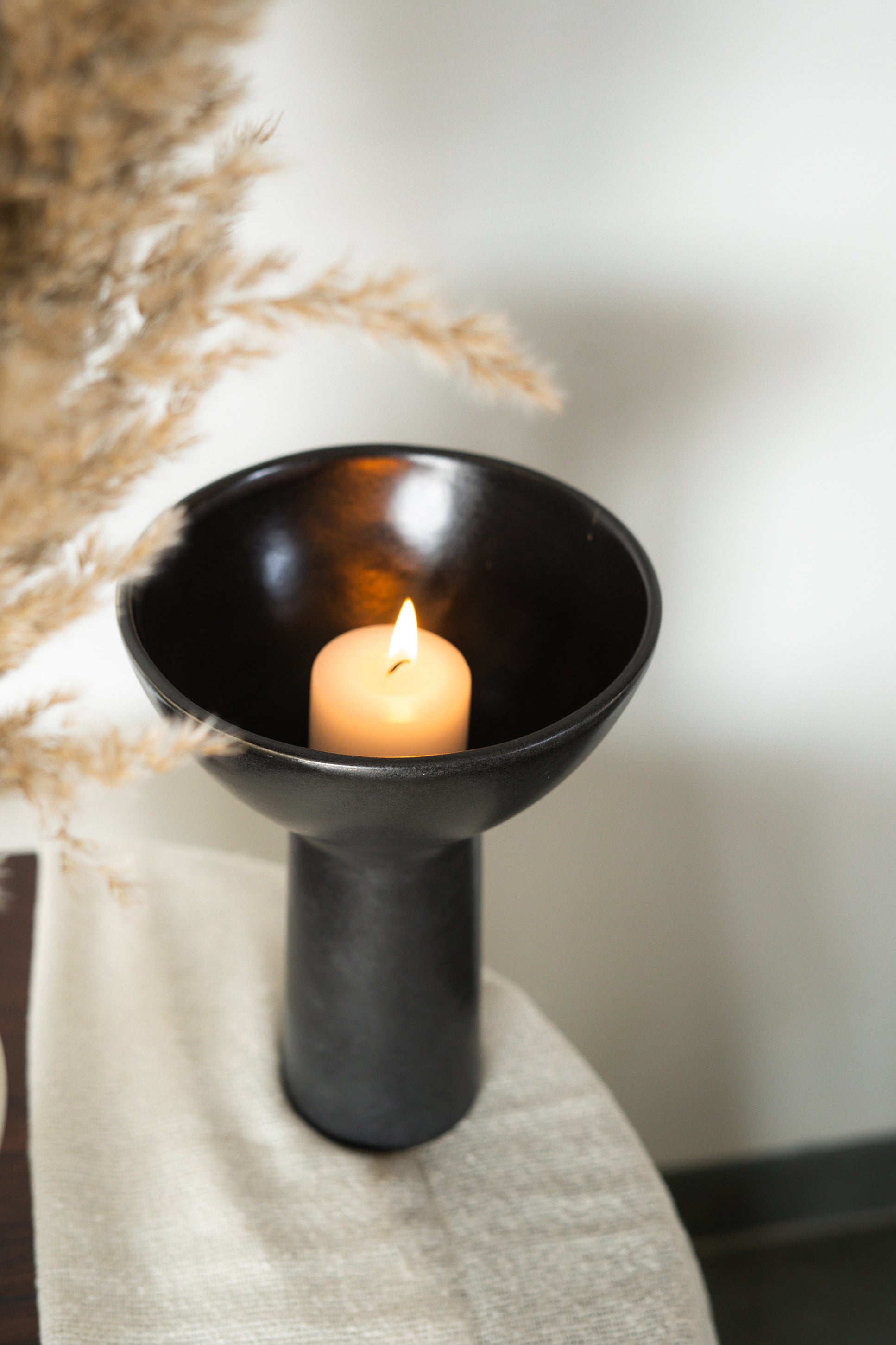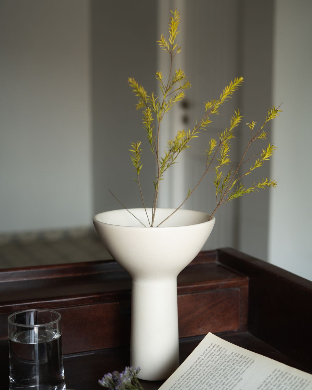 Iris ceramic long pedestal vase with its minimalist design, smooth finish and versatility would elevate any corner of your home ! A centrepiece for you to style it the way you like.