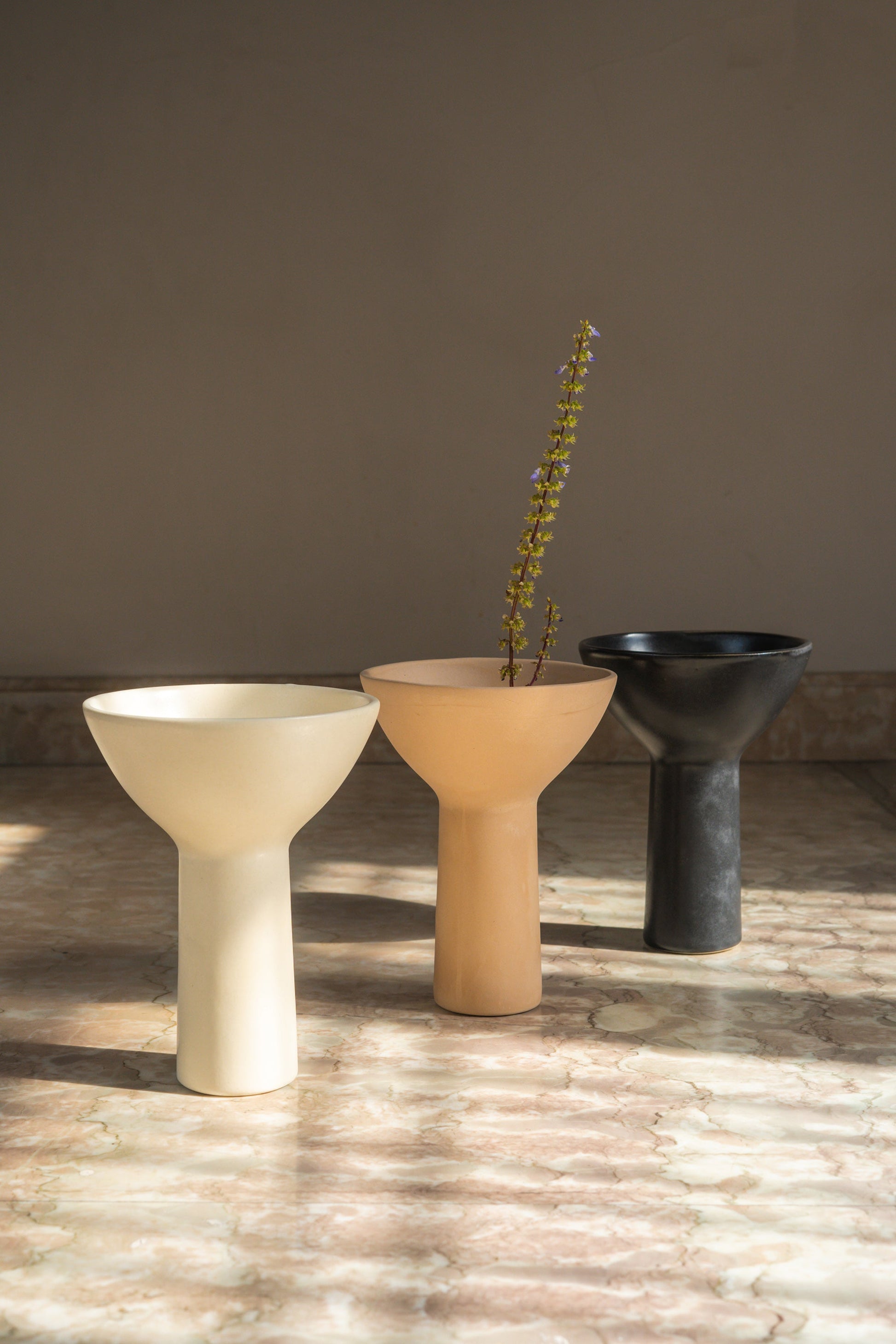 Note: White & Black Vases have semi-matt smooth finish, however the beige vase comes with a rough-stony textured finish.