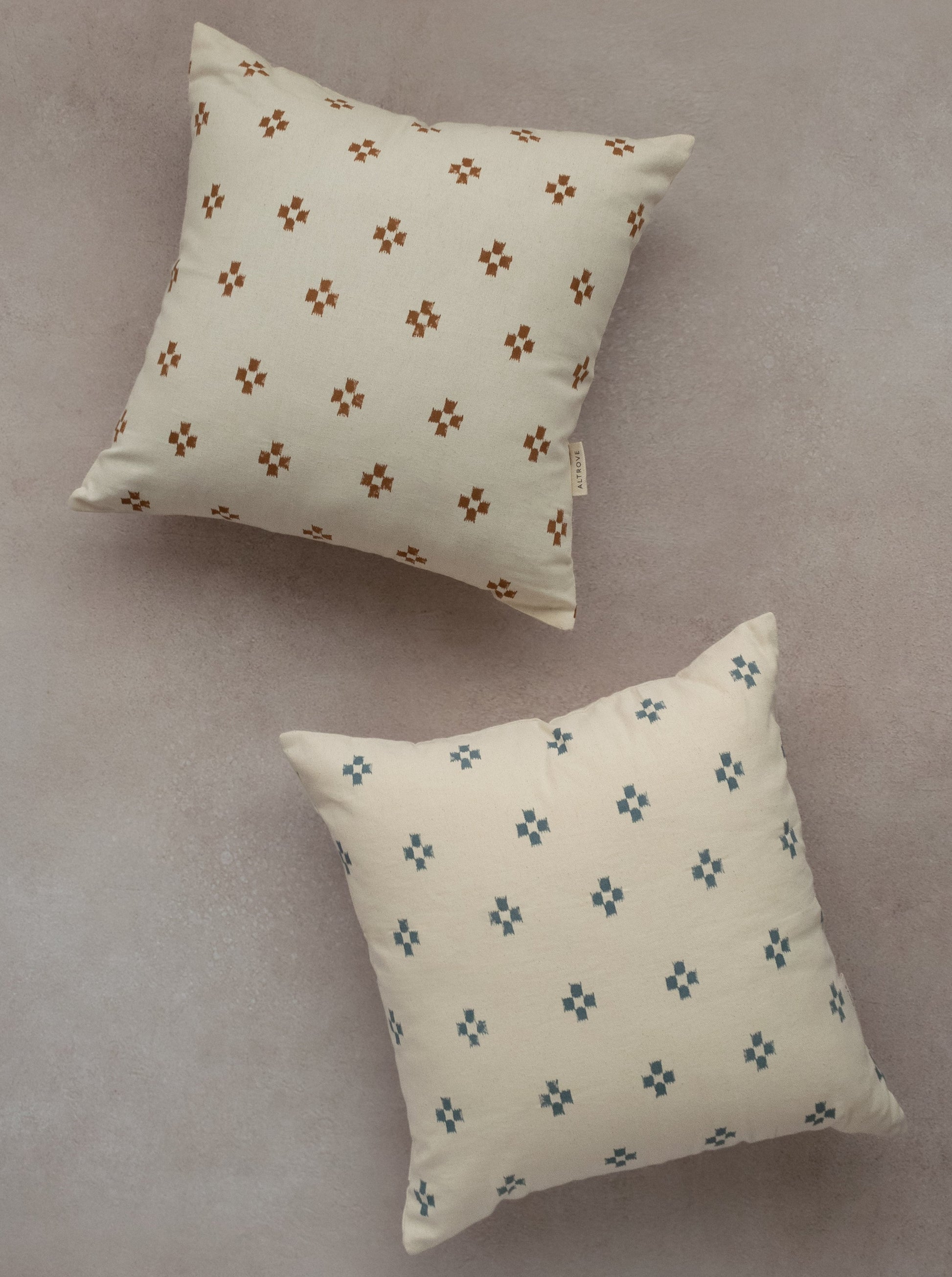 This block print couch staple cushion is a 100% cotton. Beautiful handprint details A timeless classic that adds a touch of opulence to any room. Seamlessly blending the intricacies of modern design with the artistry of traditional craftsmanship, this exquisite cushion is sure to be a stunning addition to your home.
