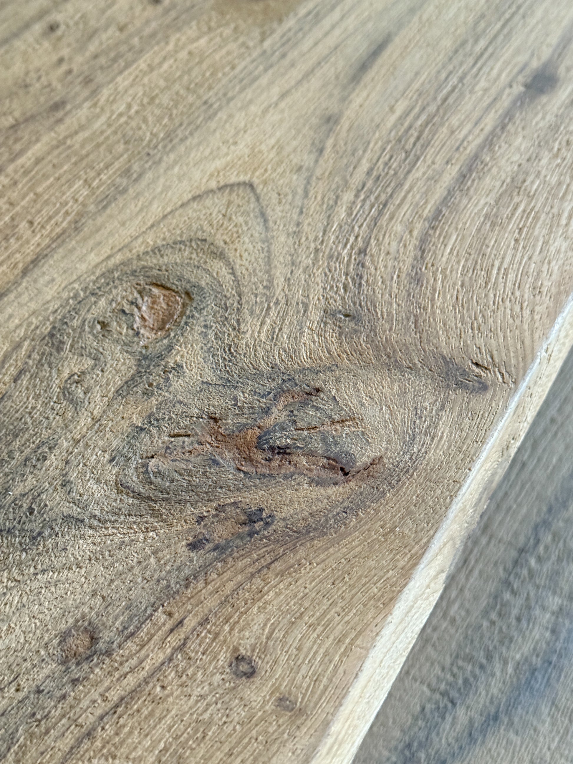 - Wood: New mango wood - sandblasted with Bleach Finish