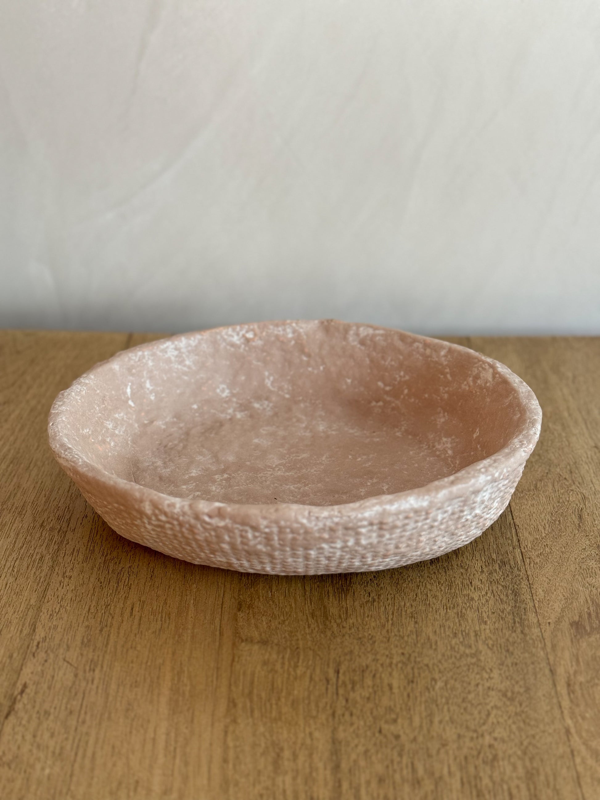 These bowls features a round shape and unique paper mache texture that adds significant character to any space. Available in ivory and grey.