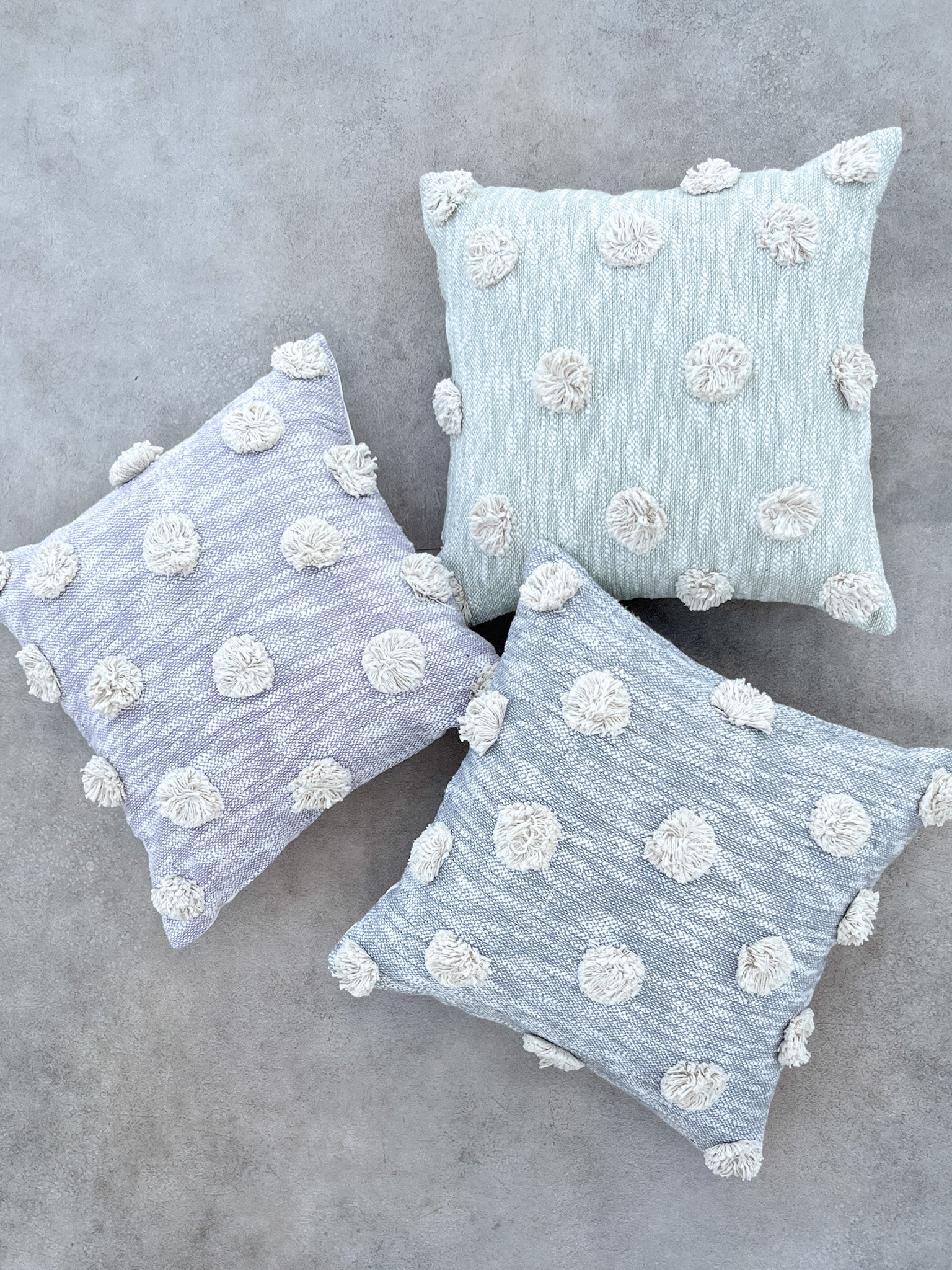 This polka pommed pillow adds please-touch playfulness and charm to any seat in your home.
