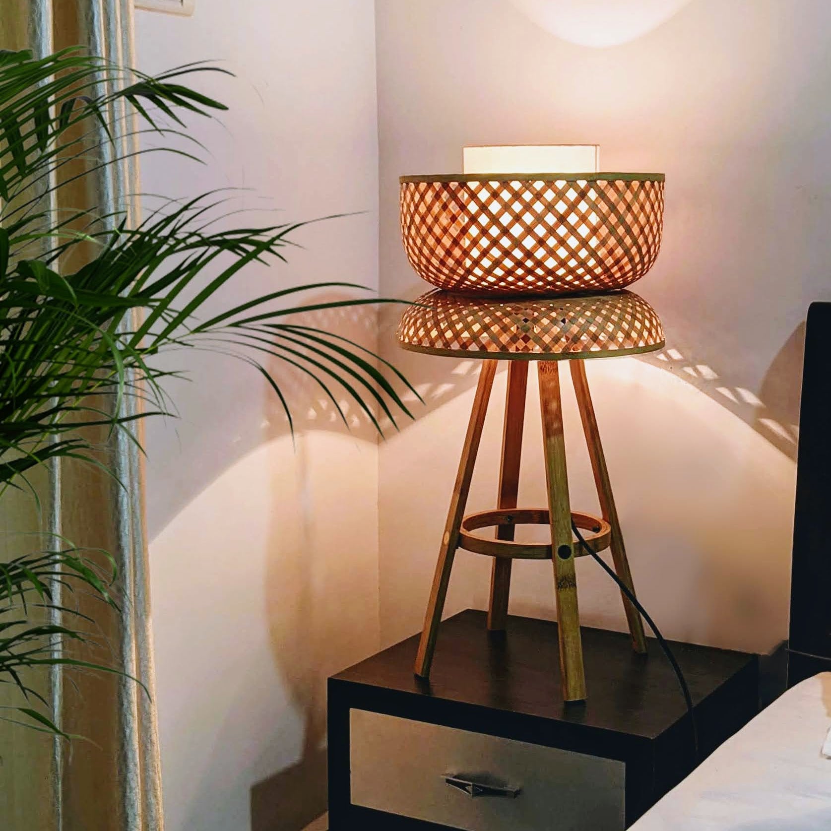 An elevated take on nature-inspired lighting, the Lotus desk lamp offers a green spin of apricity to your space. Perfect atop a nightstand or side table, the lotus-like aestivation of lampshade blurs the wall and transports you amidst the dense foliage near a stream or lake. Hand-designed from sturdy locally grown bamboo, this lamp creates functional upward light while the perforations filter a soft illumination around, while maintaining a sense of charm and intrigue.