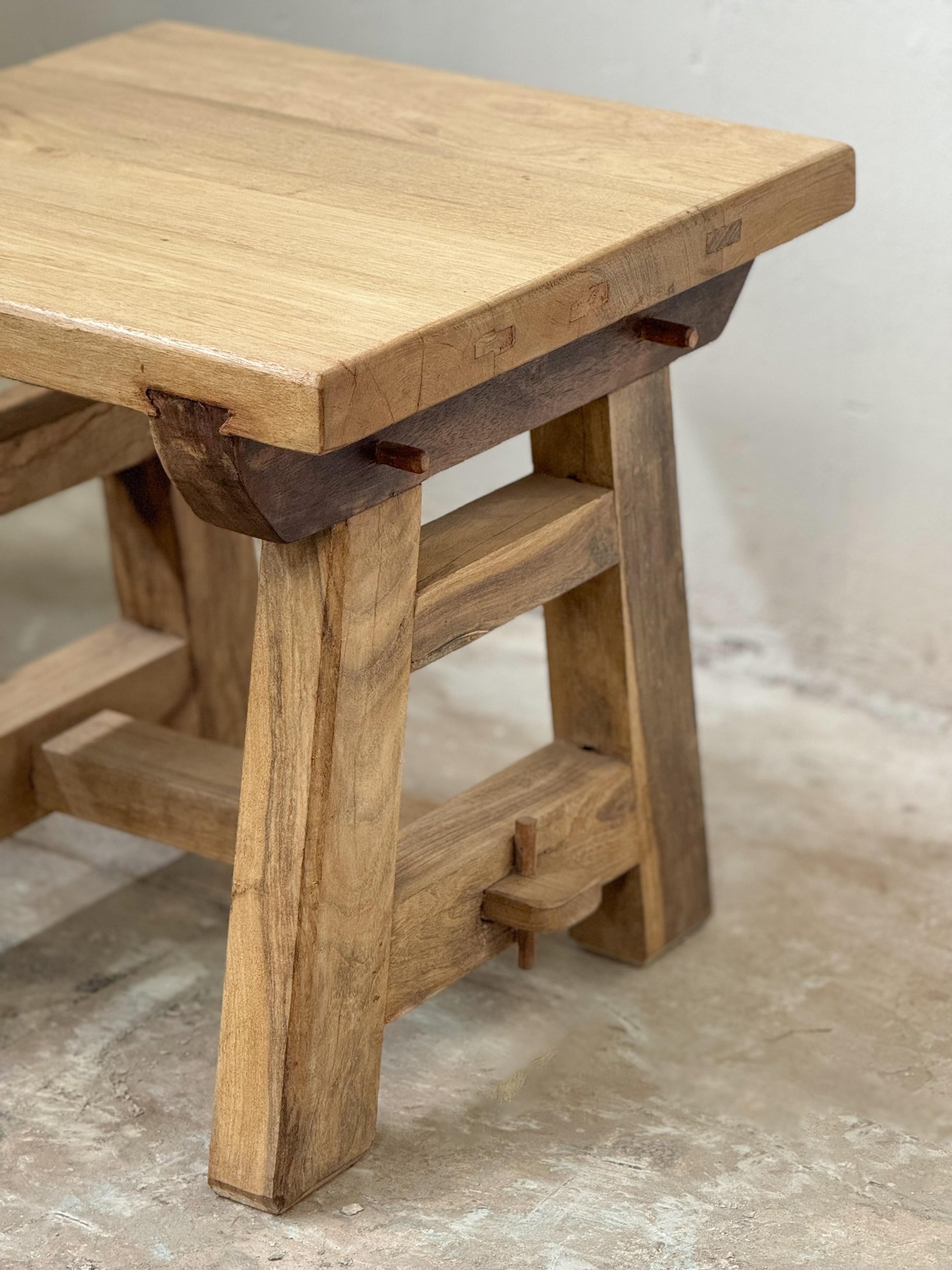 This side table is crafted from reclaimed Saal wood sourced from dismantled mills, buildings, and ships—naturally oil-resistant, chemical-free, and finished in a soft bleach tone. A versatile accent for living rooms, bedrooms, or reading corners.
