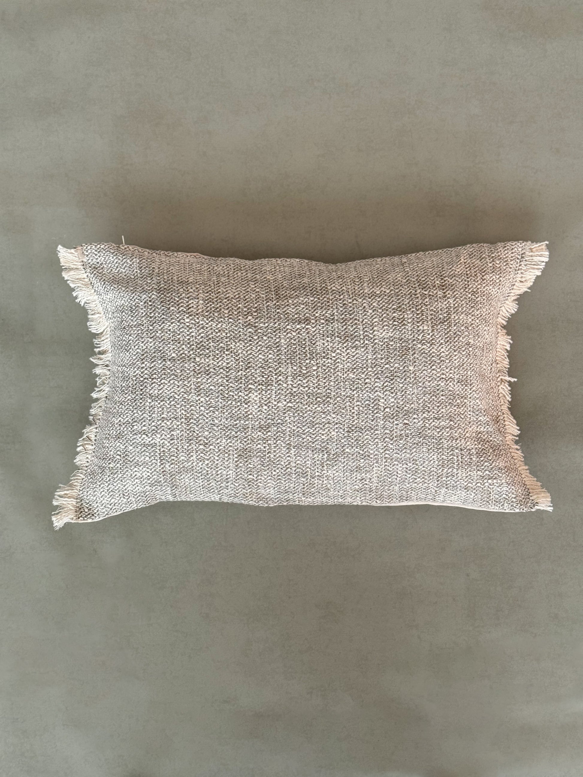 The masie cushion is a timeless essential, featuring a natural grey and brown shade that complements a wide range of decor styles.
