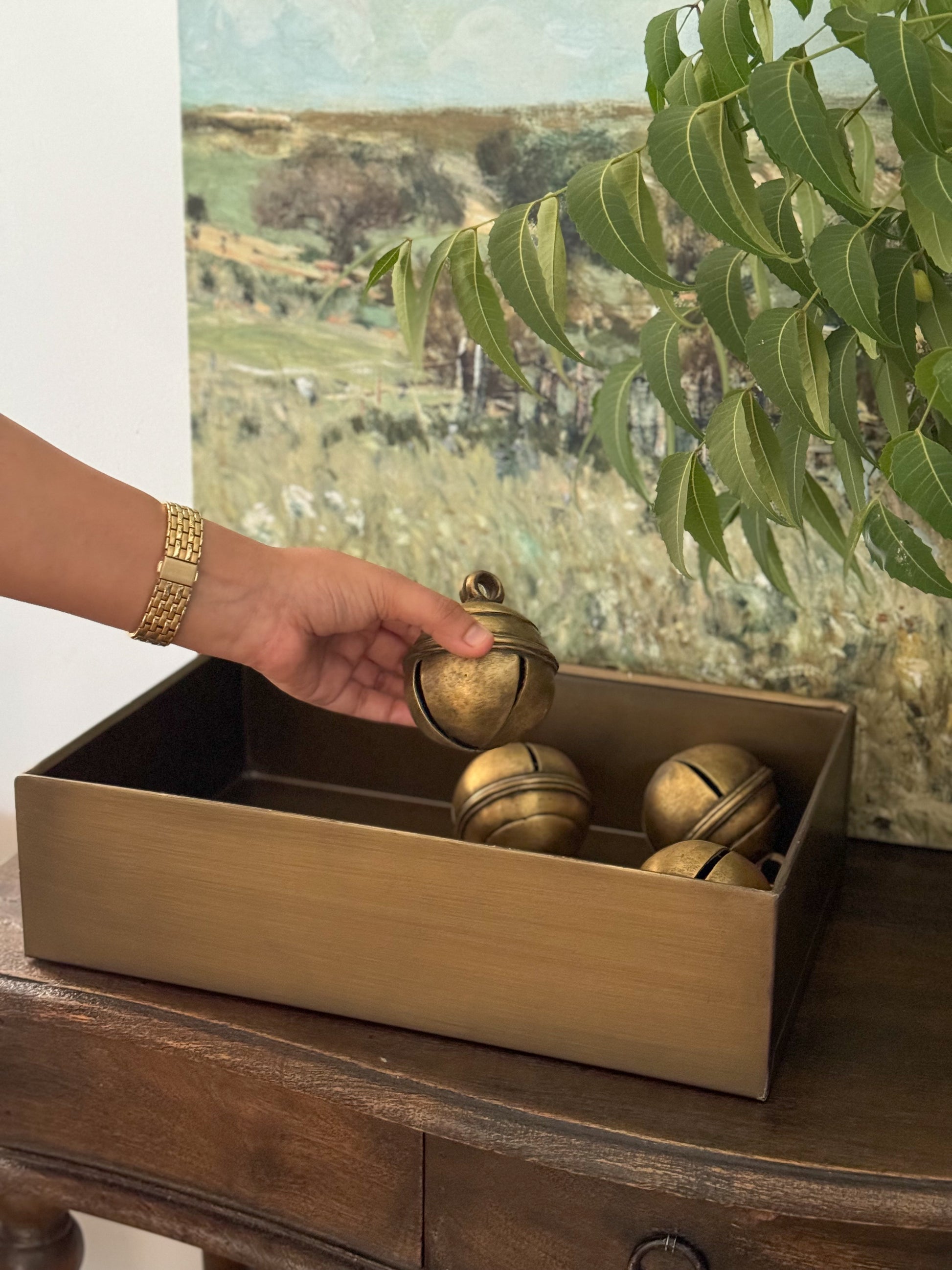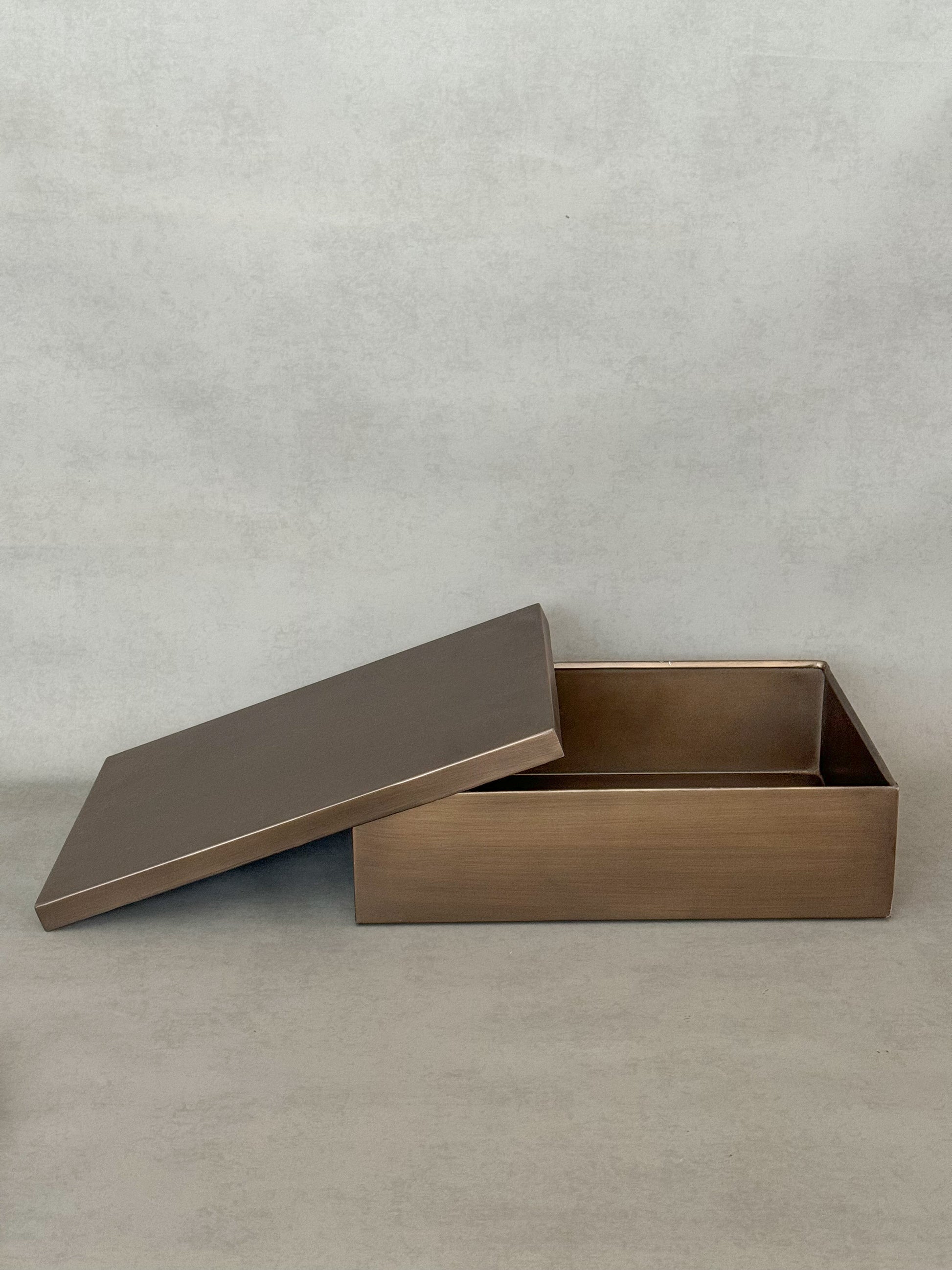 Constructed from durable brass metal sheets, these storage boxes will transport you back in time to a bygone era. The perfect storage solution.