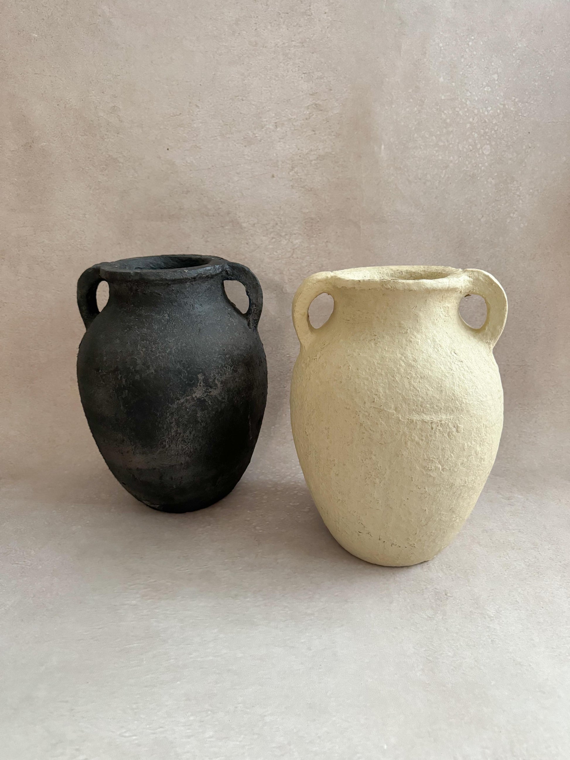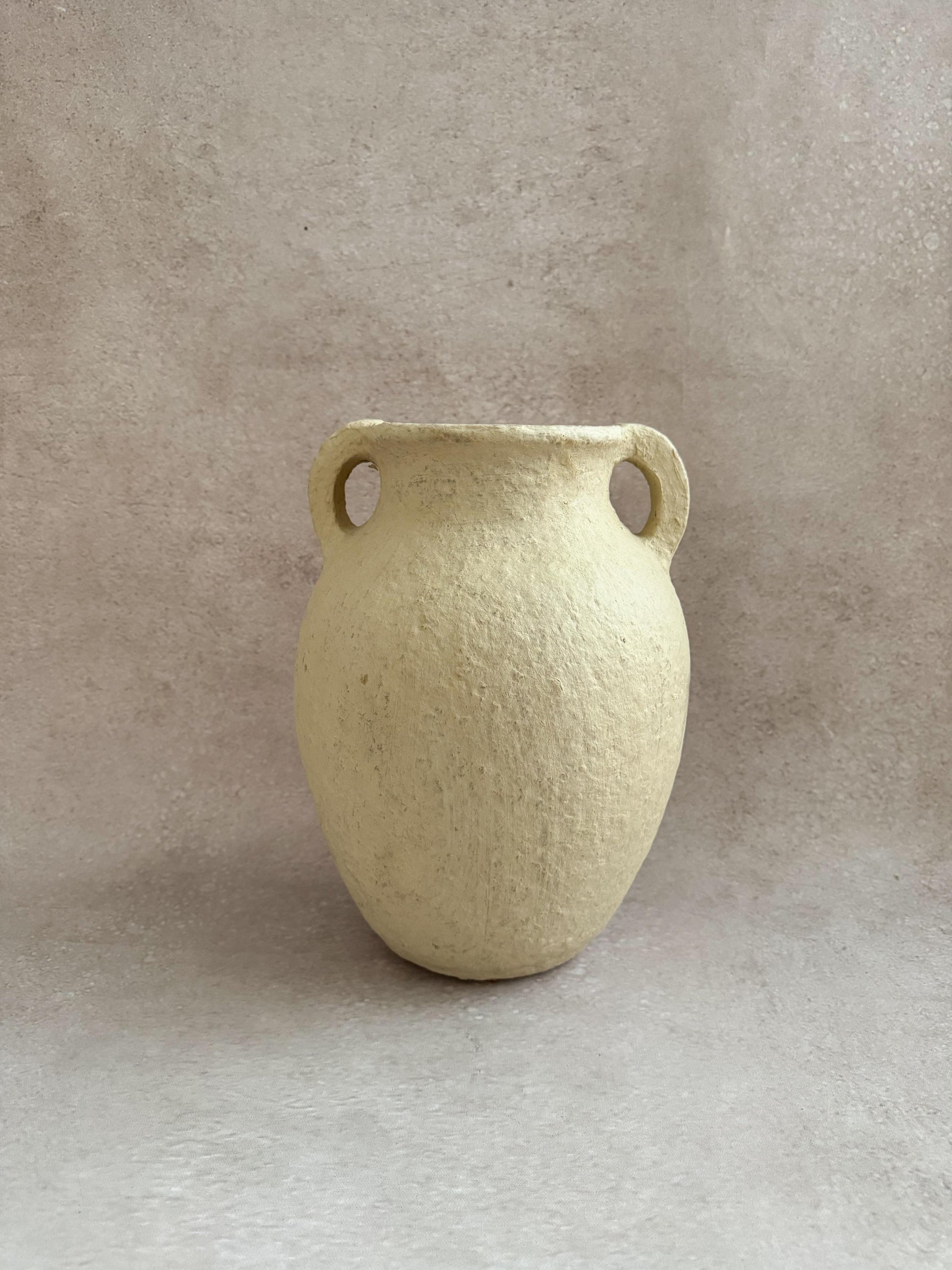 The Paper Mache Crafted Dual Handle Vase is a one of a kind statement piece, needs minimal styling and will effortlessly enhance any space it is placed in. Each paper mache product is meticulously crafted in small batches, ensuring that every piece possesses a distinct texture, color, and thickness. This uniqueness is a testament to the love and attention to detail poured into every creation.