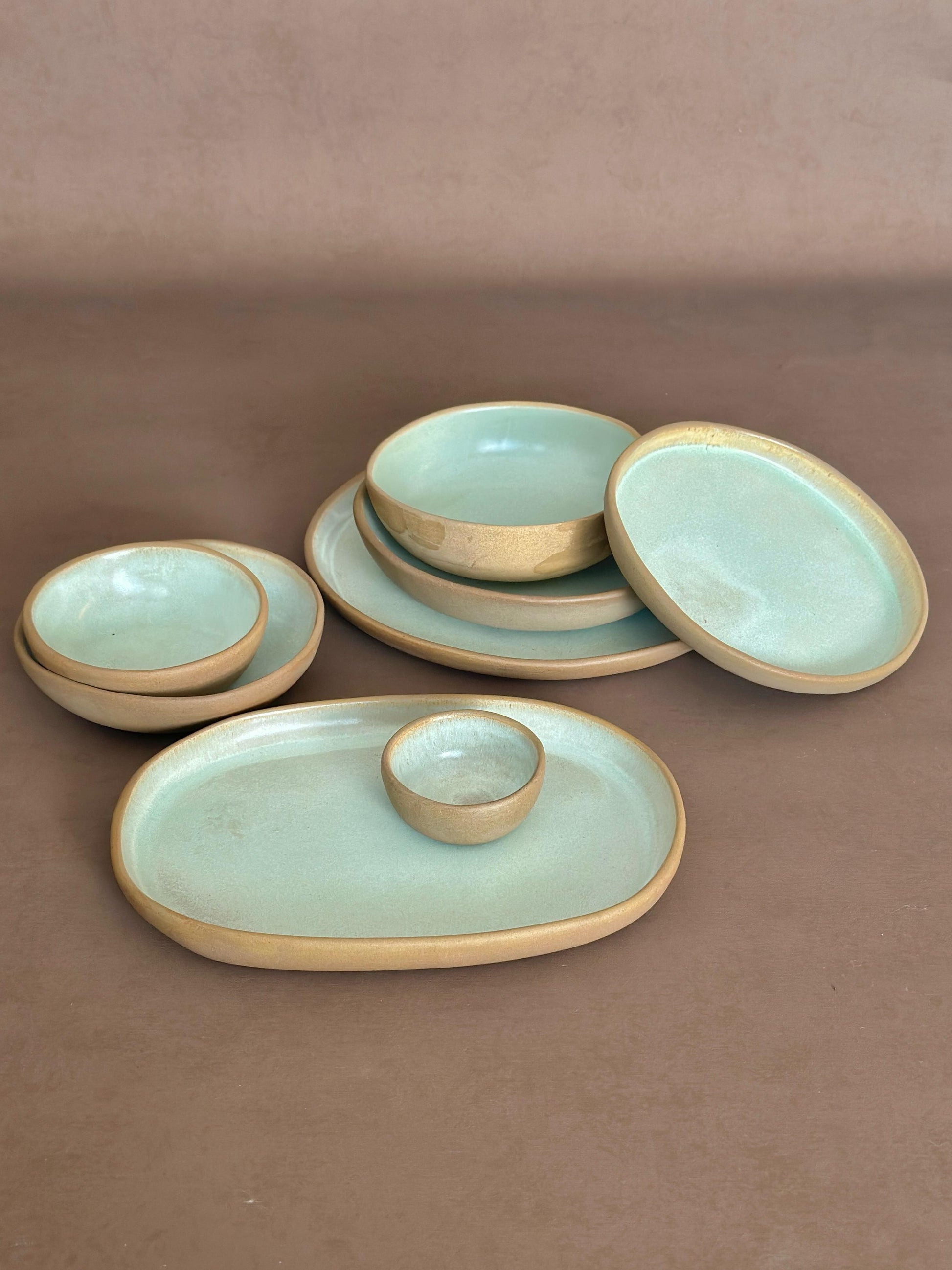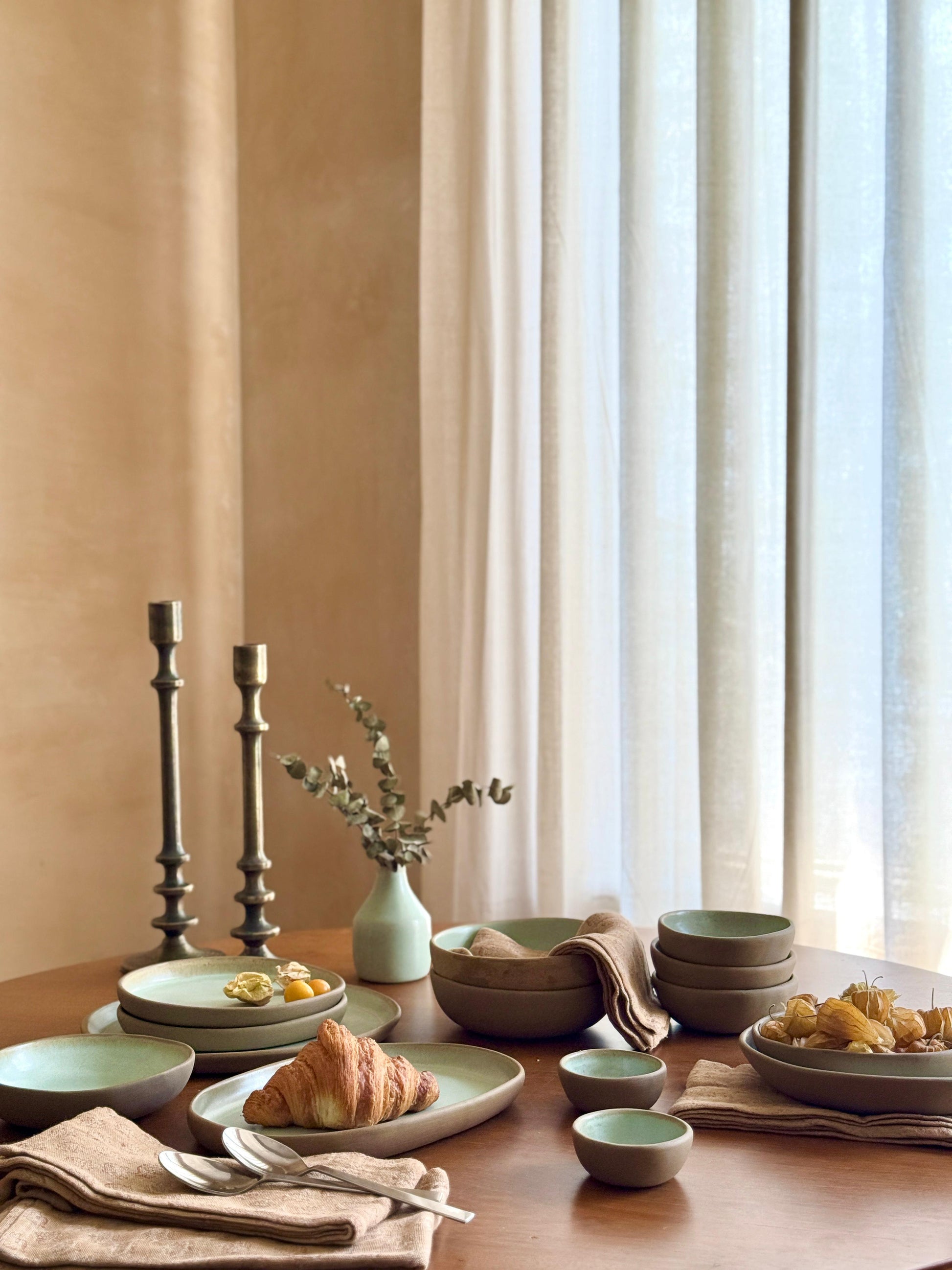 Serve up a side of style with each meal in our unique collection of dinnerware! Whether you're hosting a formal dinner or enjoying a cozy meal, this handmade organic shaped dinnerware with its subtle textures will add a touch of sophistication and charm to every occasion.