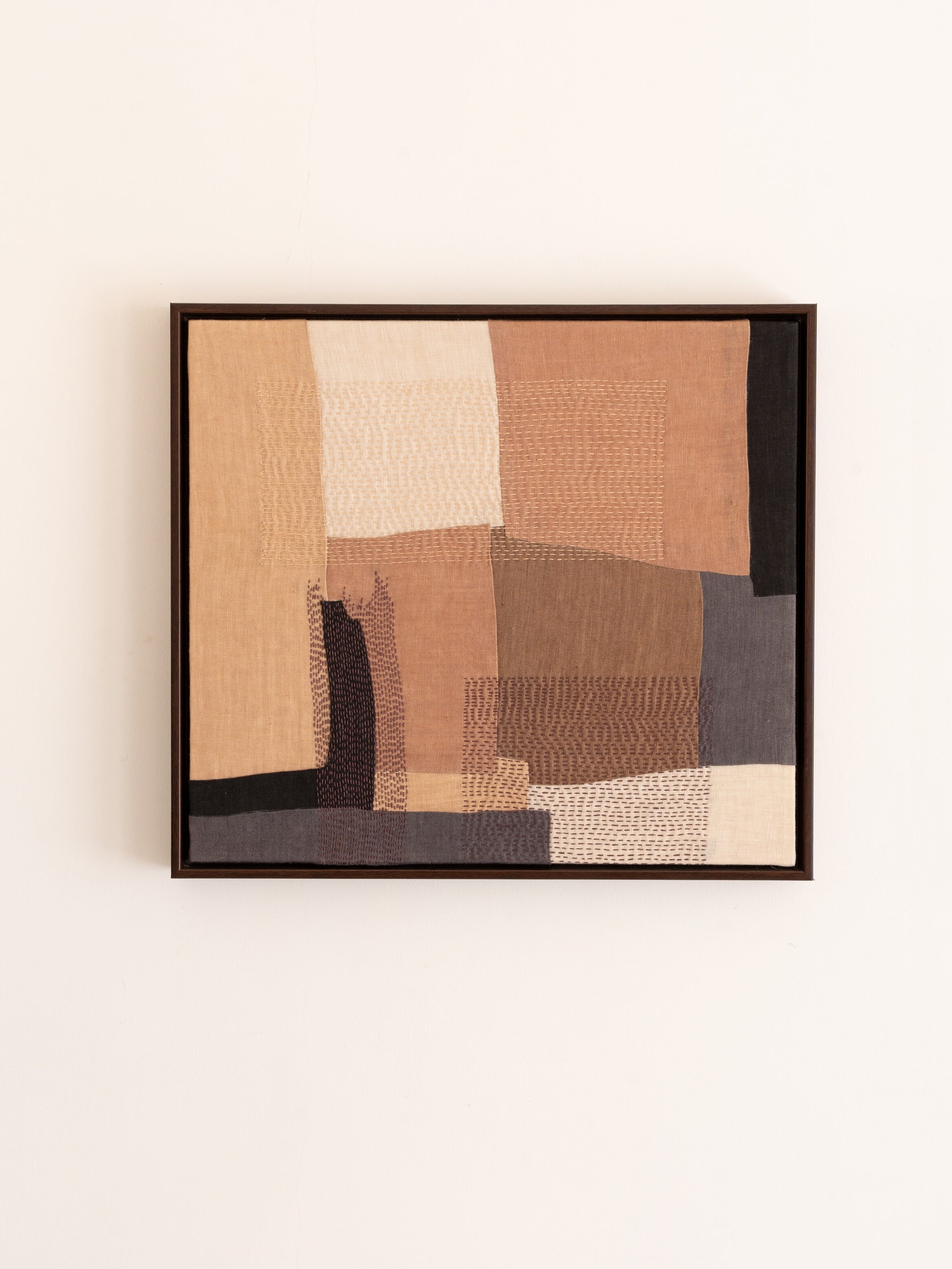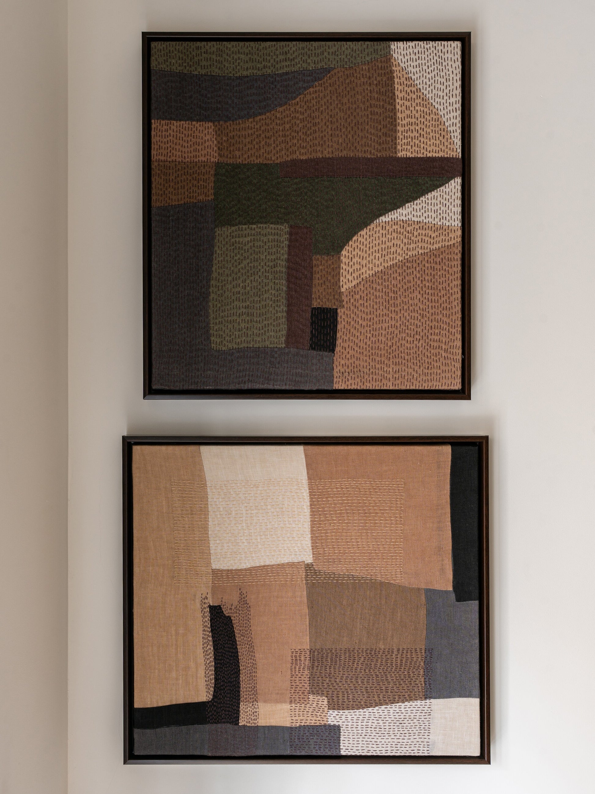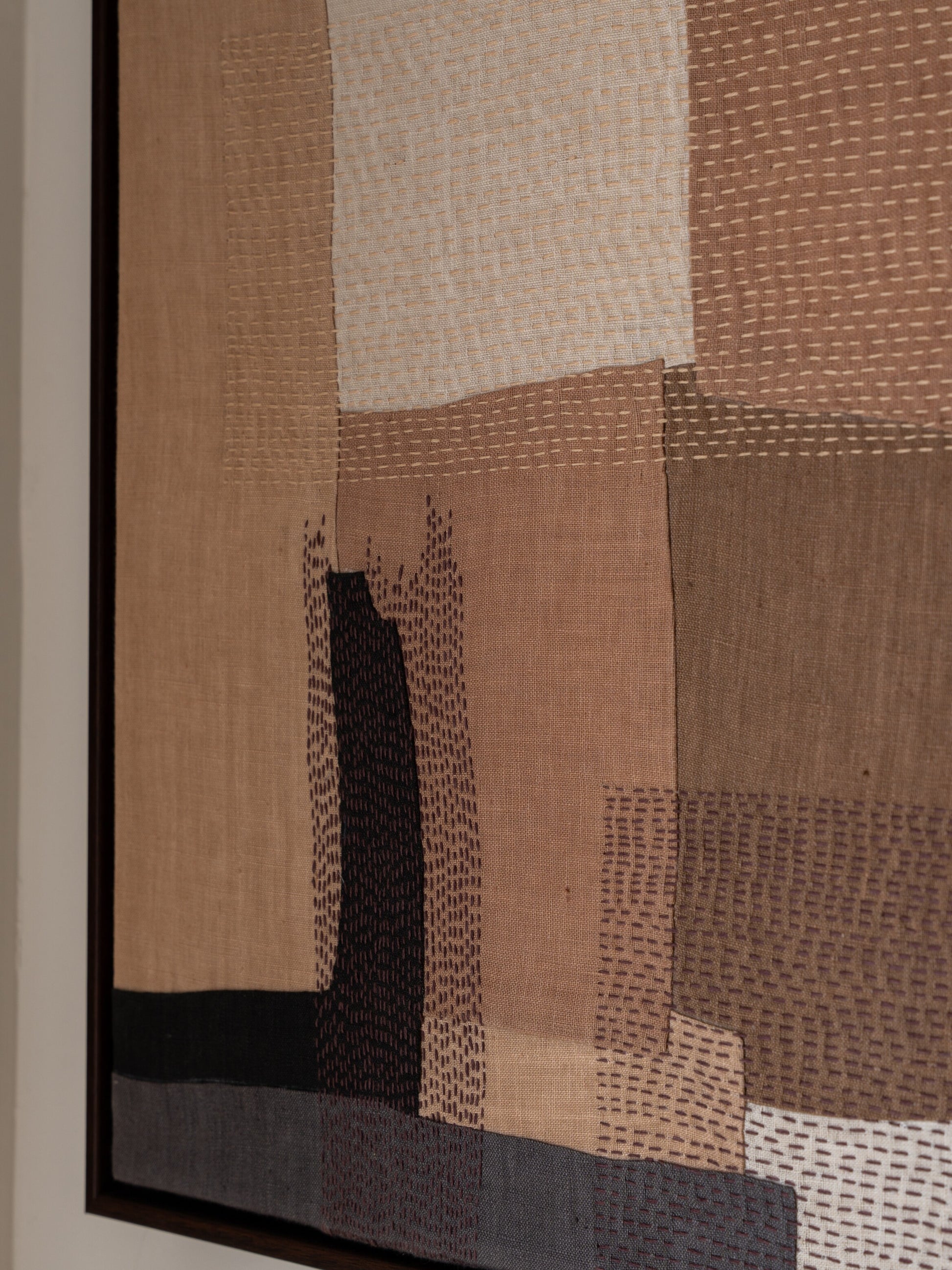 Some studio days begin with scissors and a spark of curiosity. Quilted Memories was born on one such afternoon-part play, part accident, part delight. We started by unpicking patches of fabric, unsure what we'd find. Sometimes a bold colour peeked through; other times, a whisper of texture. The fabric seemed to hold its own quiet history-resisting, yielding, then revealing something unexpected. It felt like a game-pulling, tugging, occasionally making mistakes, only to be surprised by what emerged. This wasn't a traditional quilt, but something more emotional-layered with pauses, laughter, and the thrill of discovery. A tactile journal of making and memory, stitched with wonder and the beauty hiding just beneath the surface.