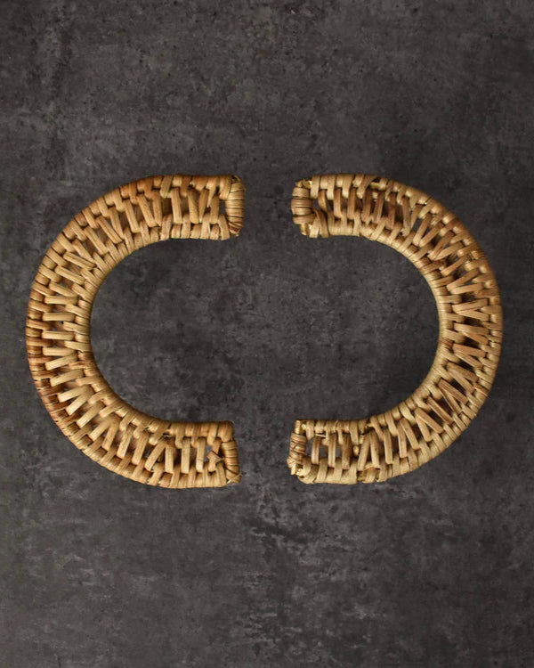 Chic half moon rattan cabinet and drawer handle. This wardrobe handle is hand woven by skilled craftsmen and has a rustic look. This cupboard drawer handle will revamp your chest of drawers and kitchen cabinets. Use a set of two handles to create a beautiful circular shape.