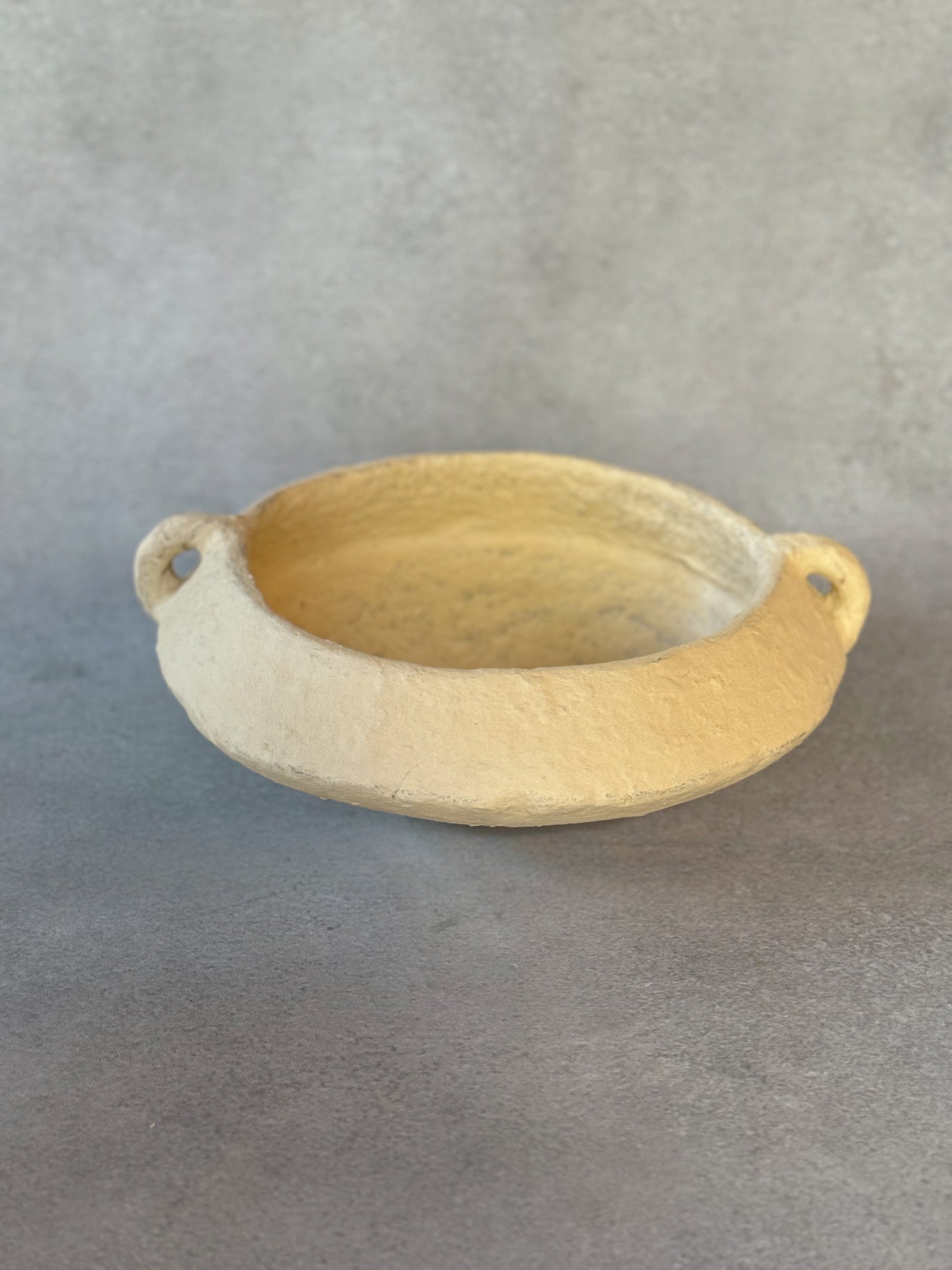 This vase features a round shape and unique paper mache texture that adds significant character to any space. You can style it with fresh stems or flowers to complete the look.