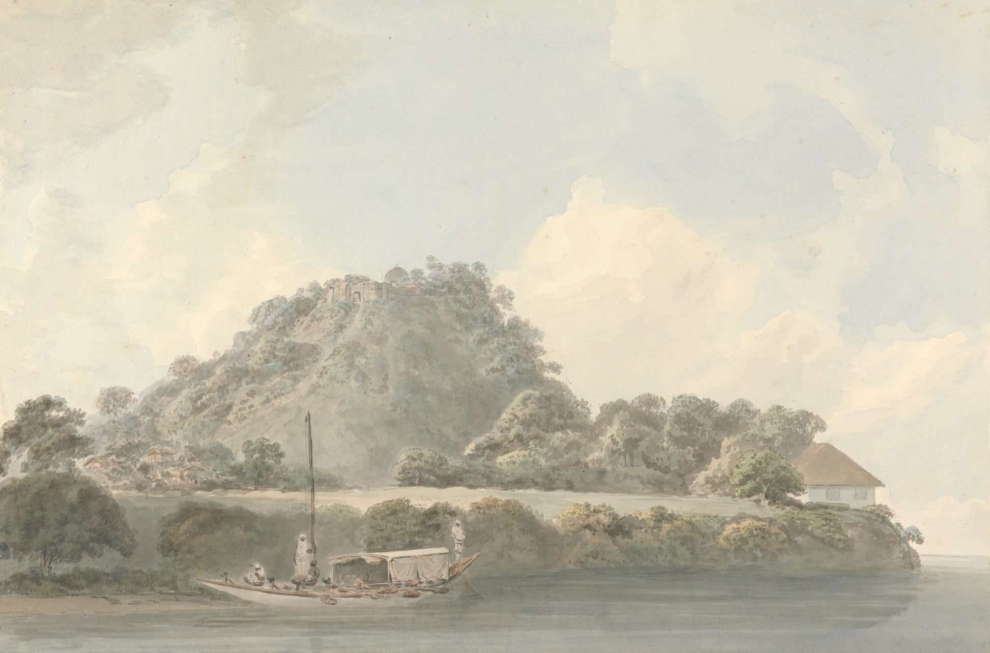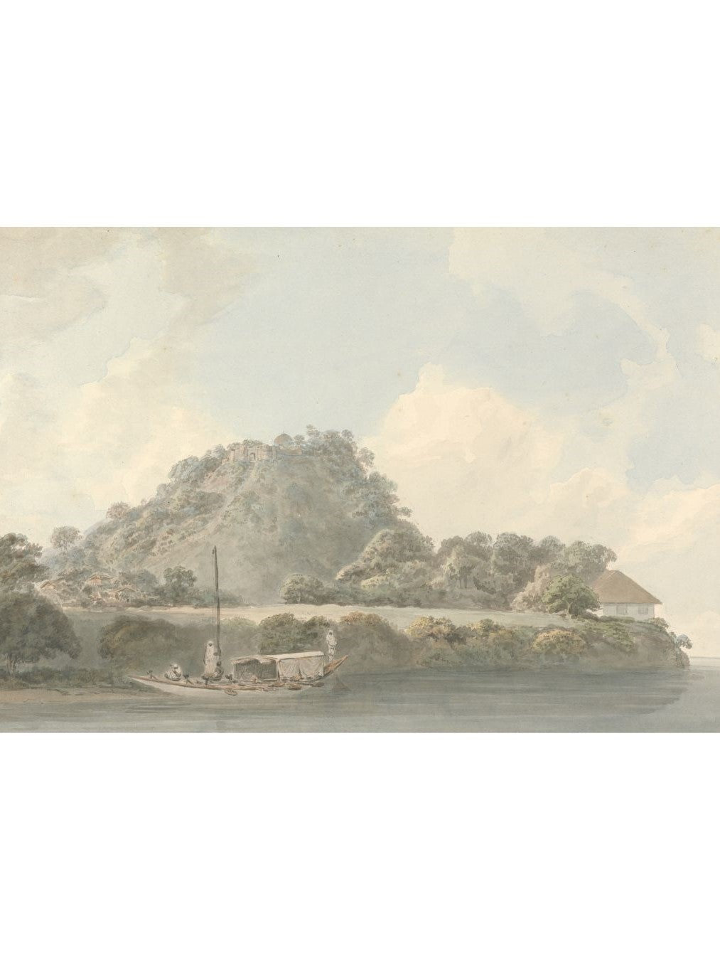A captivating vintage painting from the 1800s, depicting serene riverside setting in muted colors.