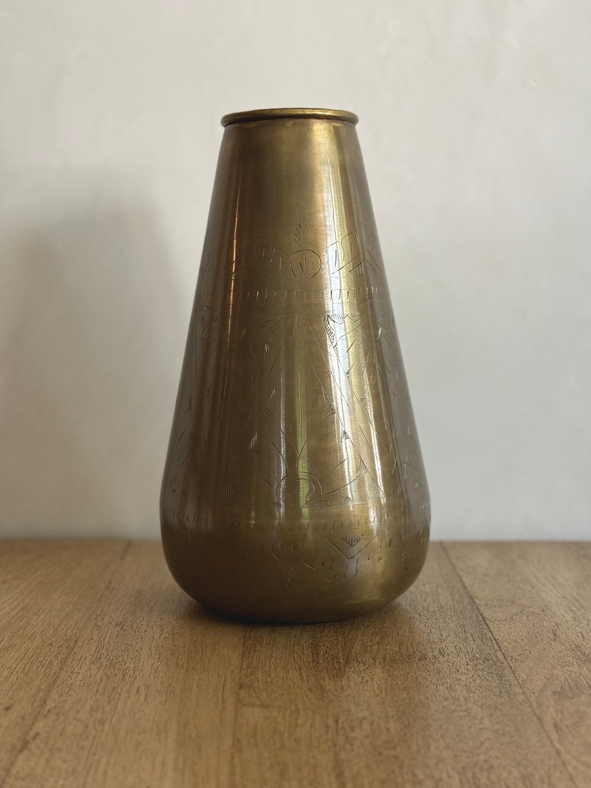 Available in two sizes, these antique-finished brass vases are perfect for showcasing flowers, or enhancing your decor.