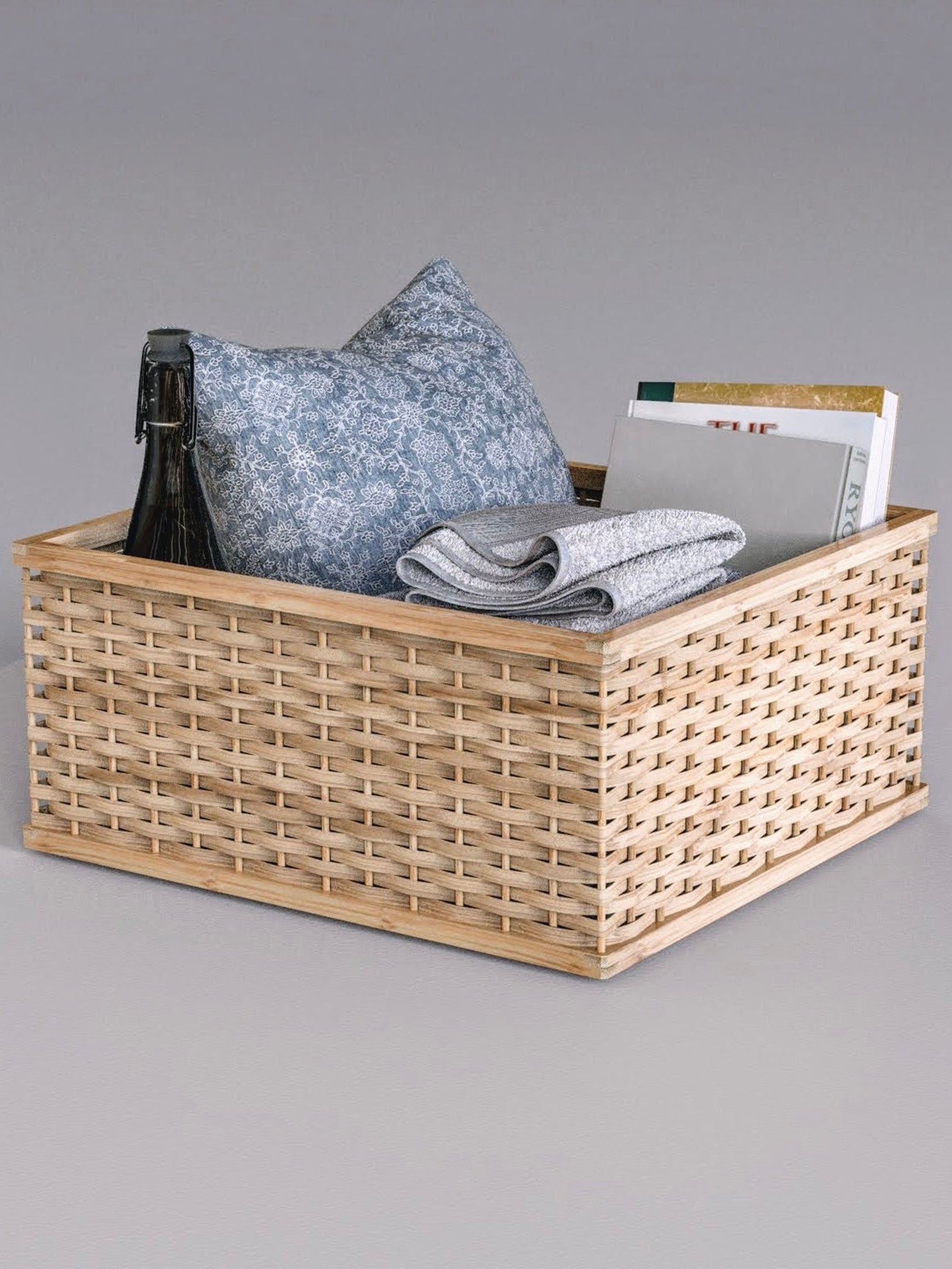 Bamboo - a material known for its strength and flexibility, helps you elegantly stash, stow, and corral clutter without a worry. Easy to slide under your bed, or stack in your wardrobe, these baskets are perfect for storing books, towels, clothes, toys, or shoes. Available in a nature-themed color palette, these baskets use nontoxic, natural paints.