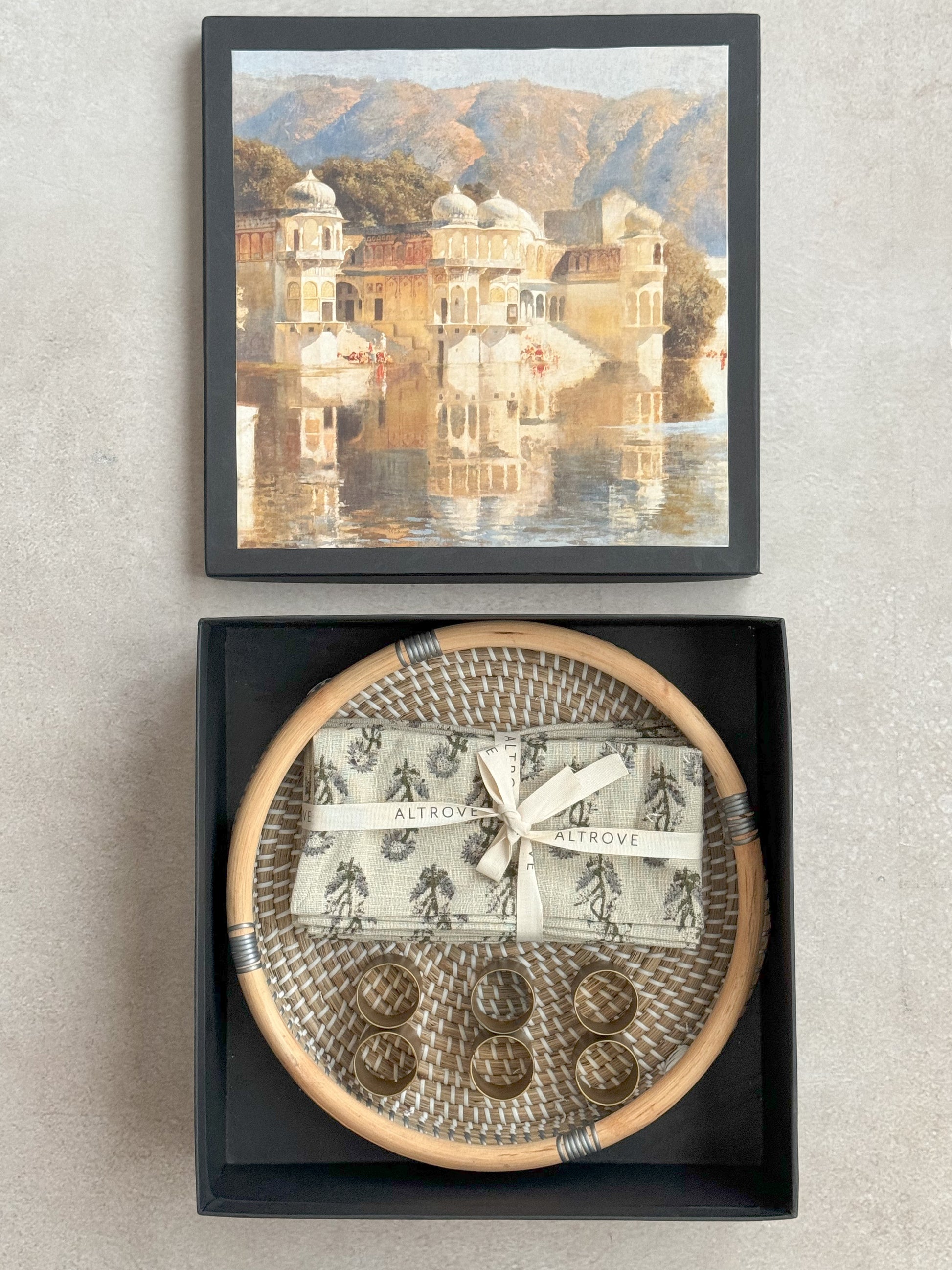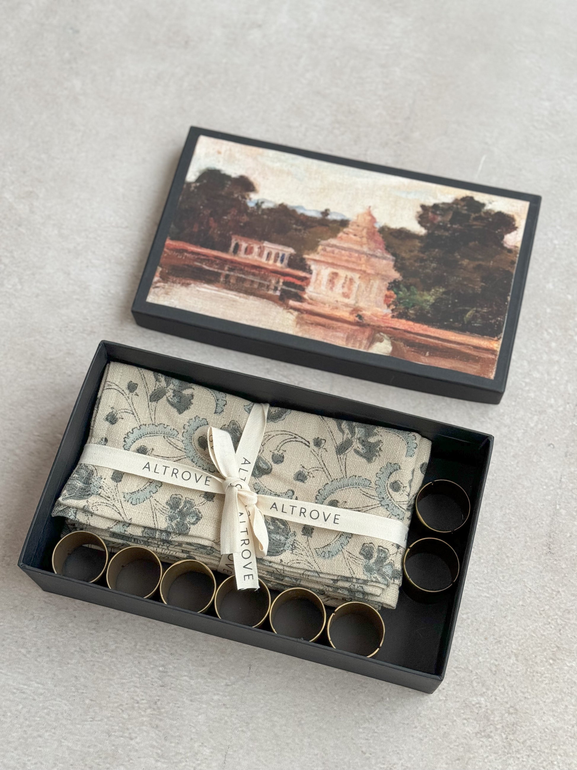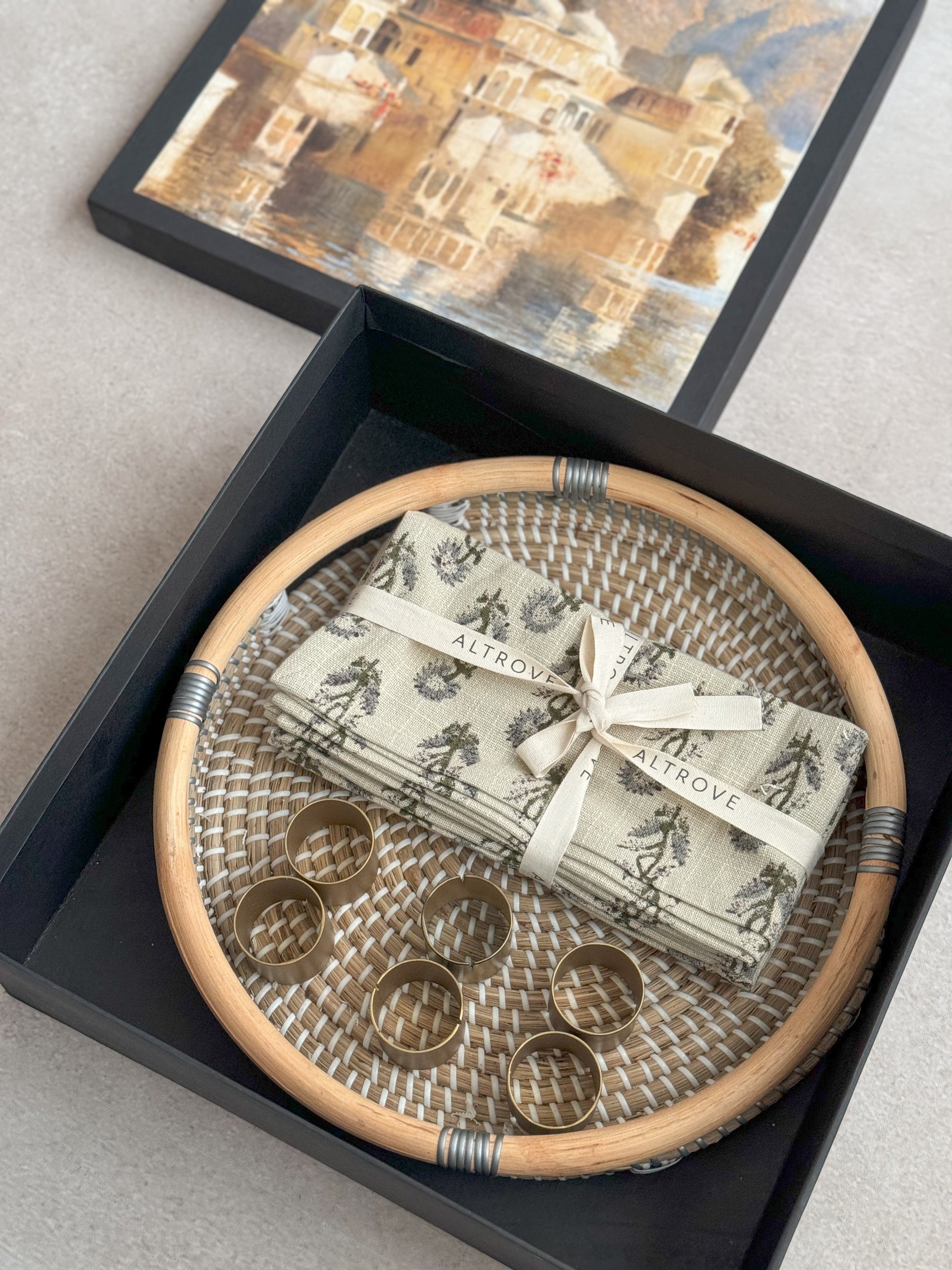 Box 1: 4 napkin rings + 4 table napkin + tray