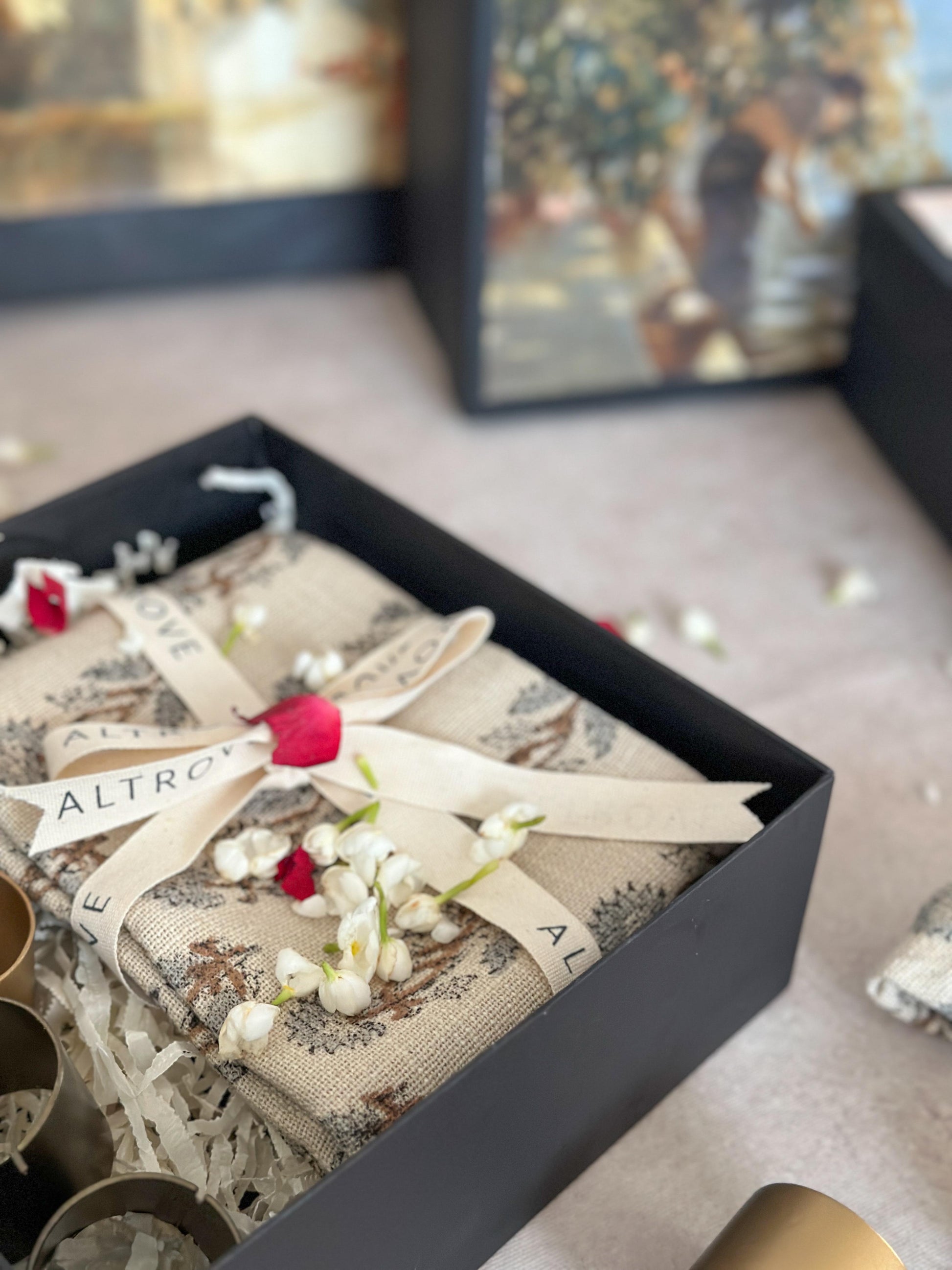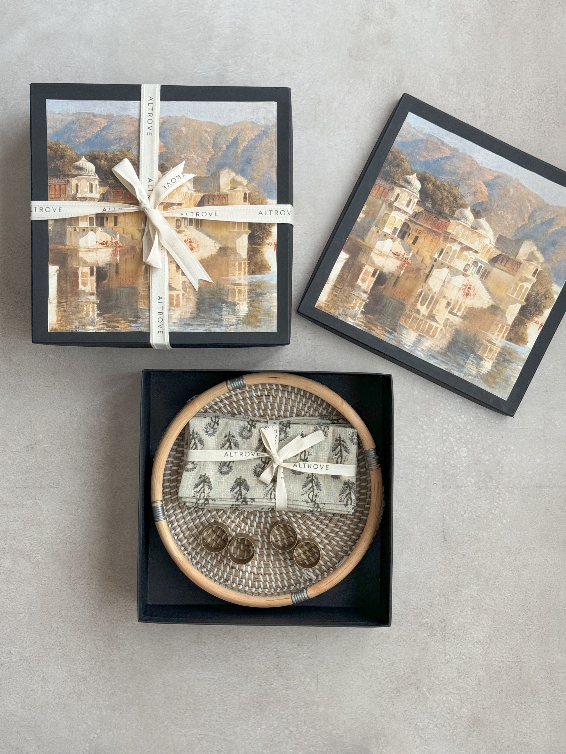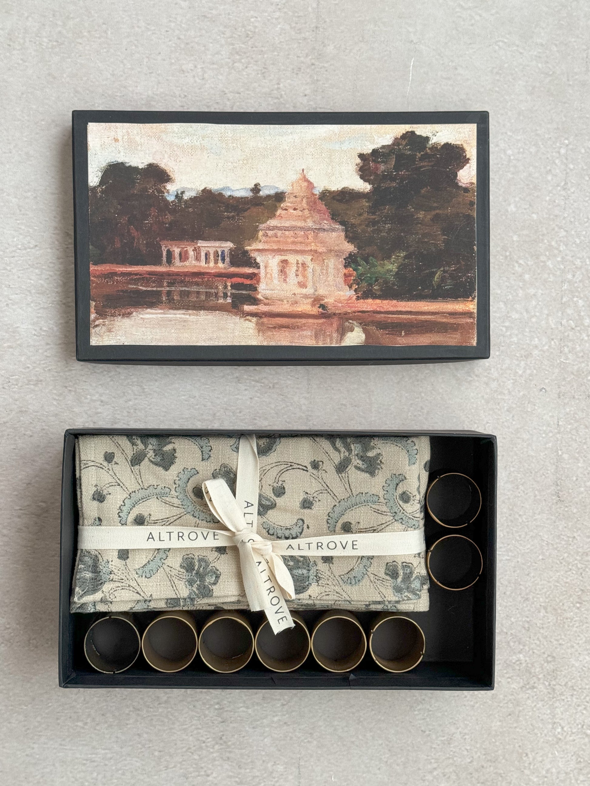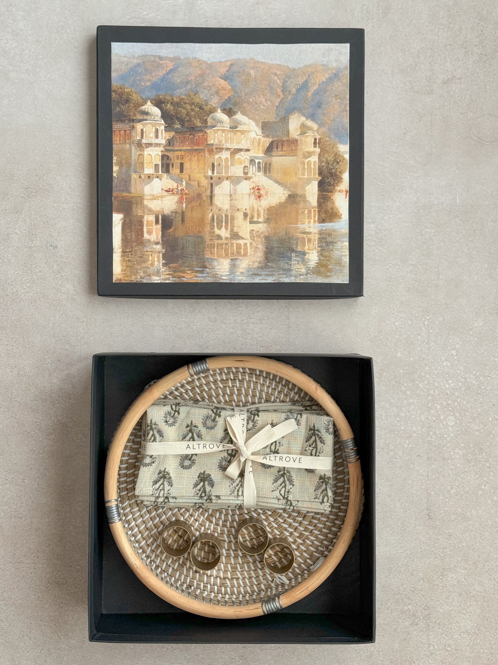 Box 1: 4 napkin rings + 4 table napkin + tray