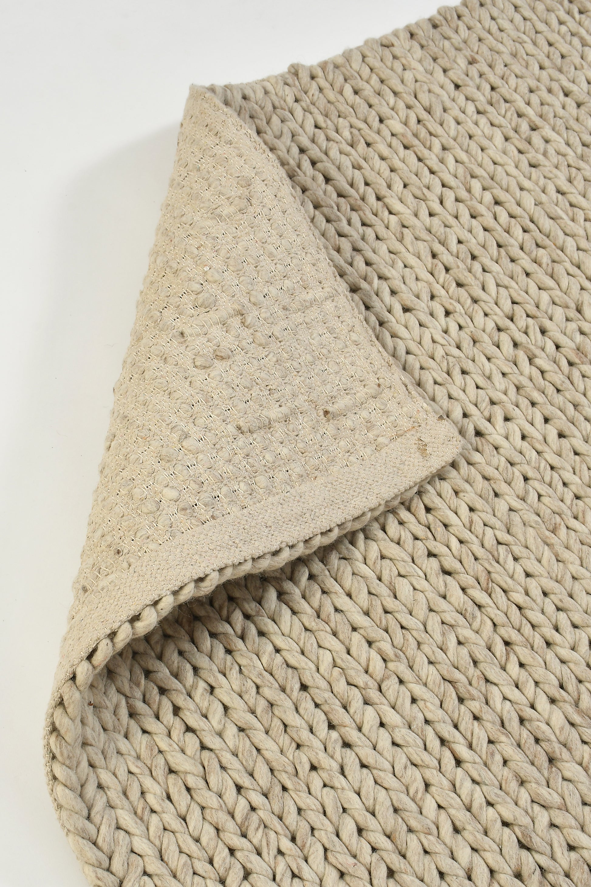 Thick Braid Rug is handwoven from 100% New Zealand wool, the Thick Braid Rug features bold, chunky braids that add rich texture and warmth. Inspired by natural fibres, it offers a softer, more luxurious feel underfoot. Its neutral beige tone and organic pattern bring grounded elegance to modern interiors.